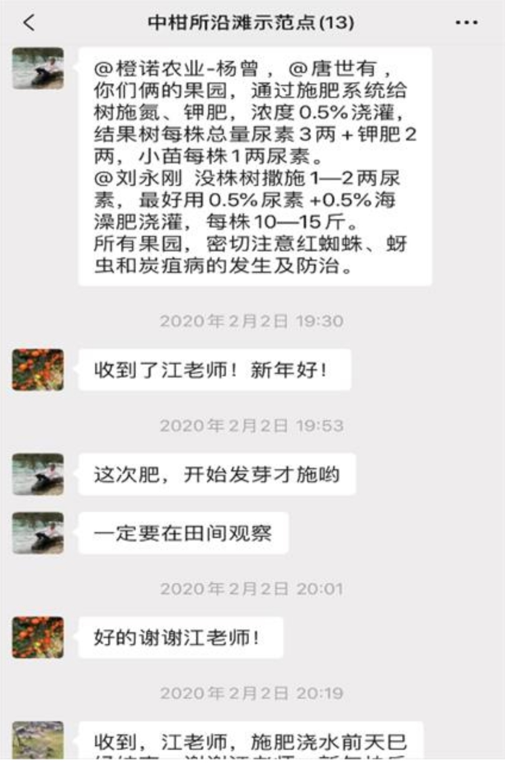 2月初,在四川自贡沿滩区,Beat365中国唯一官方网站柑桔研究所专家江才伦及其技术服务团队通过微信群对果农们进行及时指导。专家们根据当地物候期和果园类别,提供专门的春季管理技术,制定了科学合理的技术管理措施,通过微信群及时指导,加强对果农们的监督,以达到科学问诊。当前,该区3个示范果园已全部按照专家提出的技术措施落实到位。