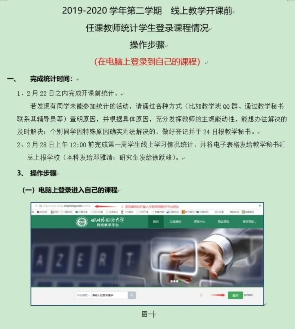 四川外国语大学马克思主义学院成立了疫情防控期间教学工作小组,明确课程教学形式安排及相关准备工作要求,学院领导实时督导,指导教师们如何使用线上教学平台,对各门课程准备的网络指导和网络教学内容进行审核把关。