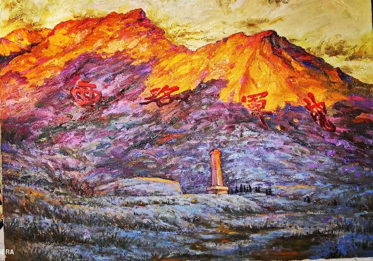 其中,“景泰县西路军战场遗址”组作最为动人心魄,共3幅作品。1936年11月,接到中央革命军事委员会命令,红军在景泰县浴血奋战16天,进行了尾泉、一条山等战役十多次,取得了“大拉牌大捷”,为西路军在景泰的组成奠定了坚实基础。