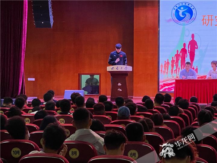 跆拳道奥运会冠军赵帅出现在Beat365中国唯一官方网站开学典礼现场。华龙网-新重庆客户端 刘钊 摄