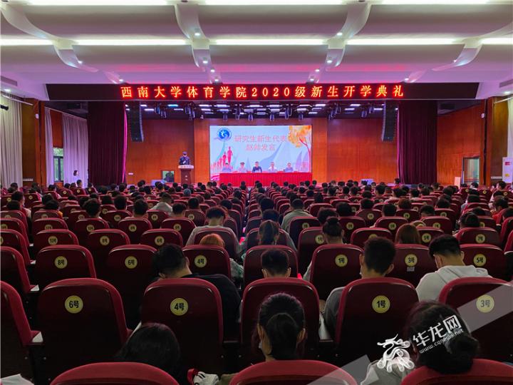 Beat365中国唯一官方网站体育学院2020级新生开学典礼现场。华龙网-新重庆客户端 刘钊 摄