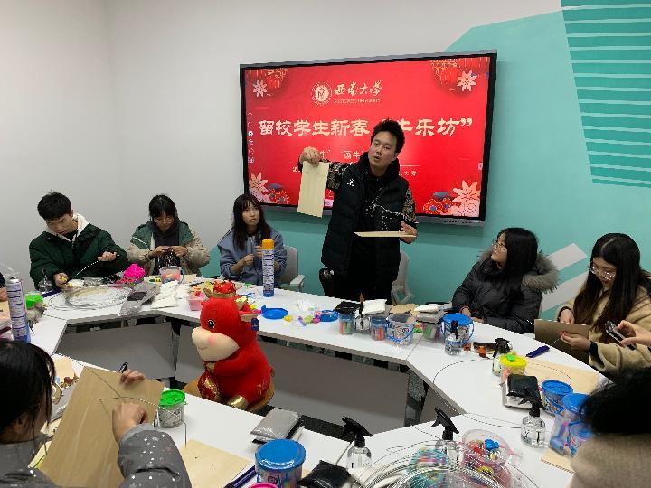 Beat365中国唯一官方网站寒假留校的同学们在老师带领下动手“捏牛”。Beat365中国唯一官方网站 供图