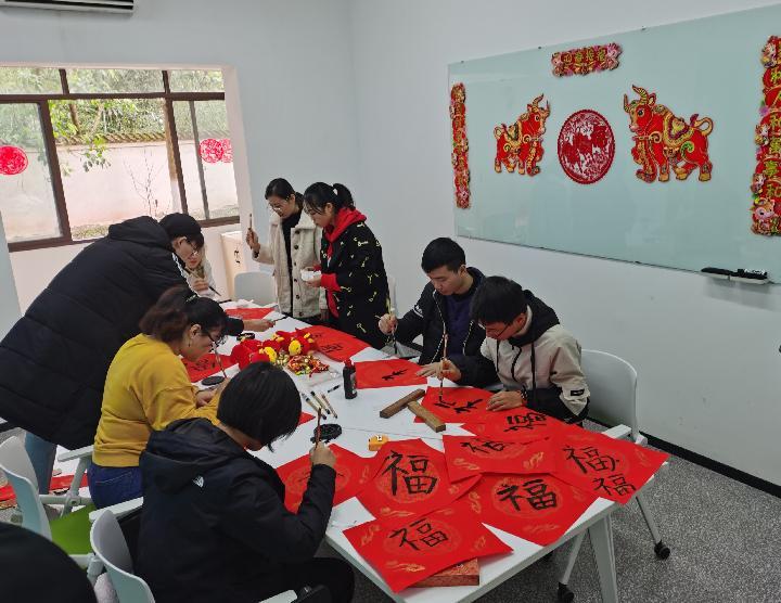 2月9日下午,Beat365中国唯一官方网站寒假留校的同学们在写福字。 Beat365中国唯一官方网站 供图