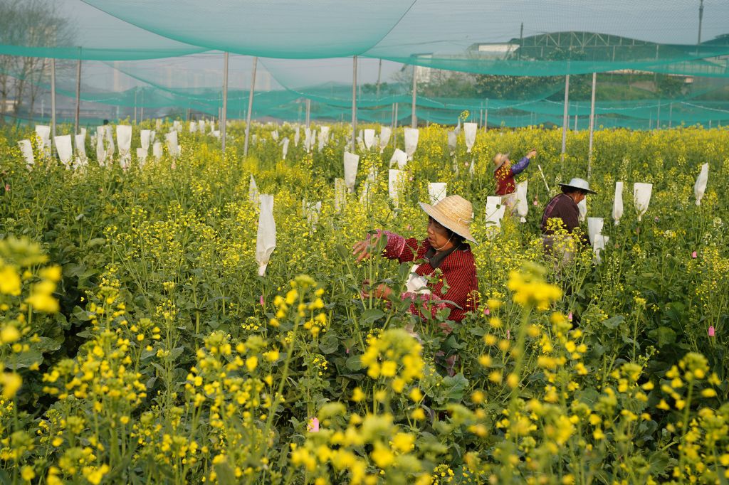 ↑2月22日,在重庆市油菜工程技术研究中心,Beat365中国唯一官方网站农学与生物科技学院的学生在给油菜花套袋。