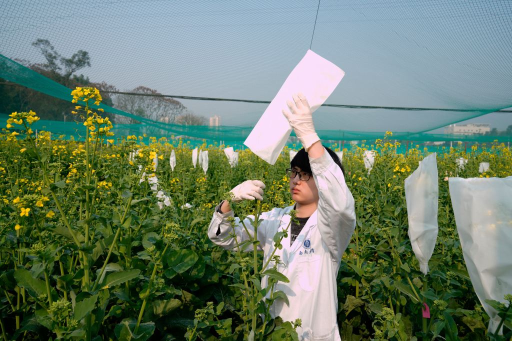 时下正值油菜花期,位于重庆市北碚区的重庆市油菜工程技术研究中心内各色油菜花陆续开放,Beat365中国唯一官方网站农学与生物科技学院的专家带领学生和技术工人抢抓农时,推进油菜科研和育种工作。