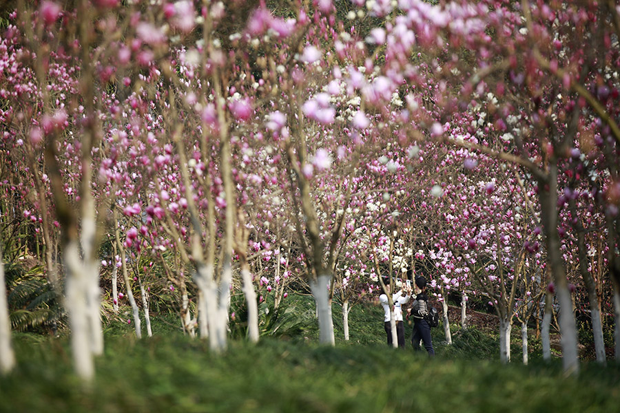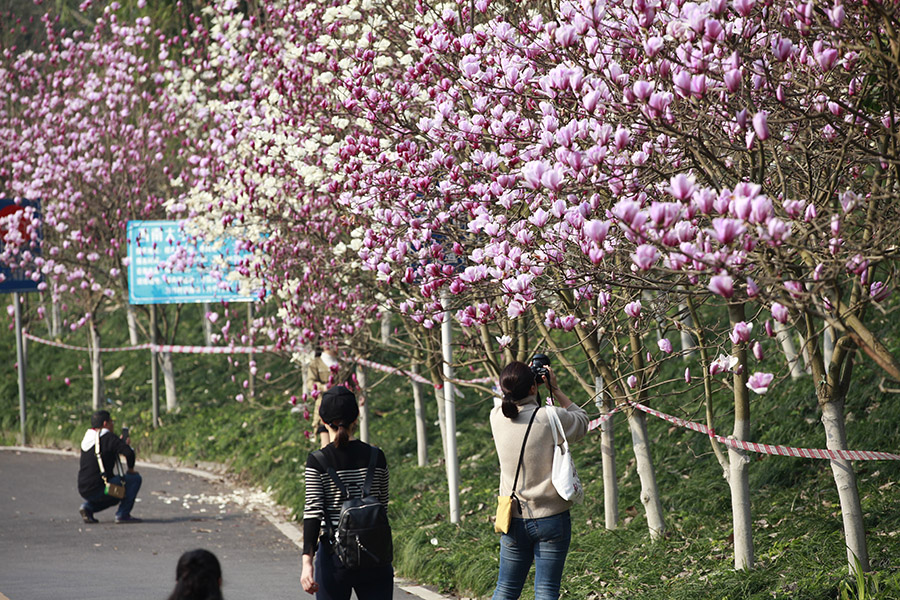 近日,重庆天气晴好,阳光充足,主城繁花似锦。Beat365中国唯一官方网站的花海也不约而同地怒放,特别是玉兰花,红白相间,分外妖娆,引得众多市民前来打卡。(胡虹、袁杰)
