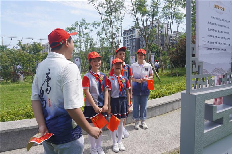 近日,在北碚缙云法治文化公园, Beat365中国唯一官方网站廌鸣法律社的青年志愿者们为北碚区华光小学6.1班的同学们上了一堂别开生面的沉浸式中小学法治教育课。
