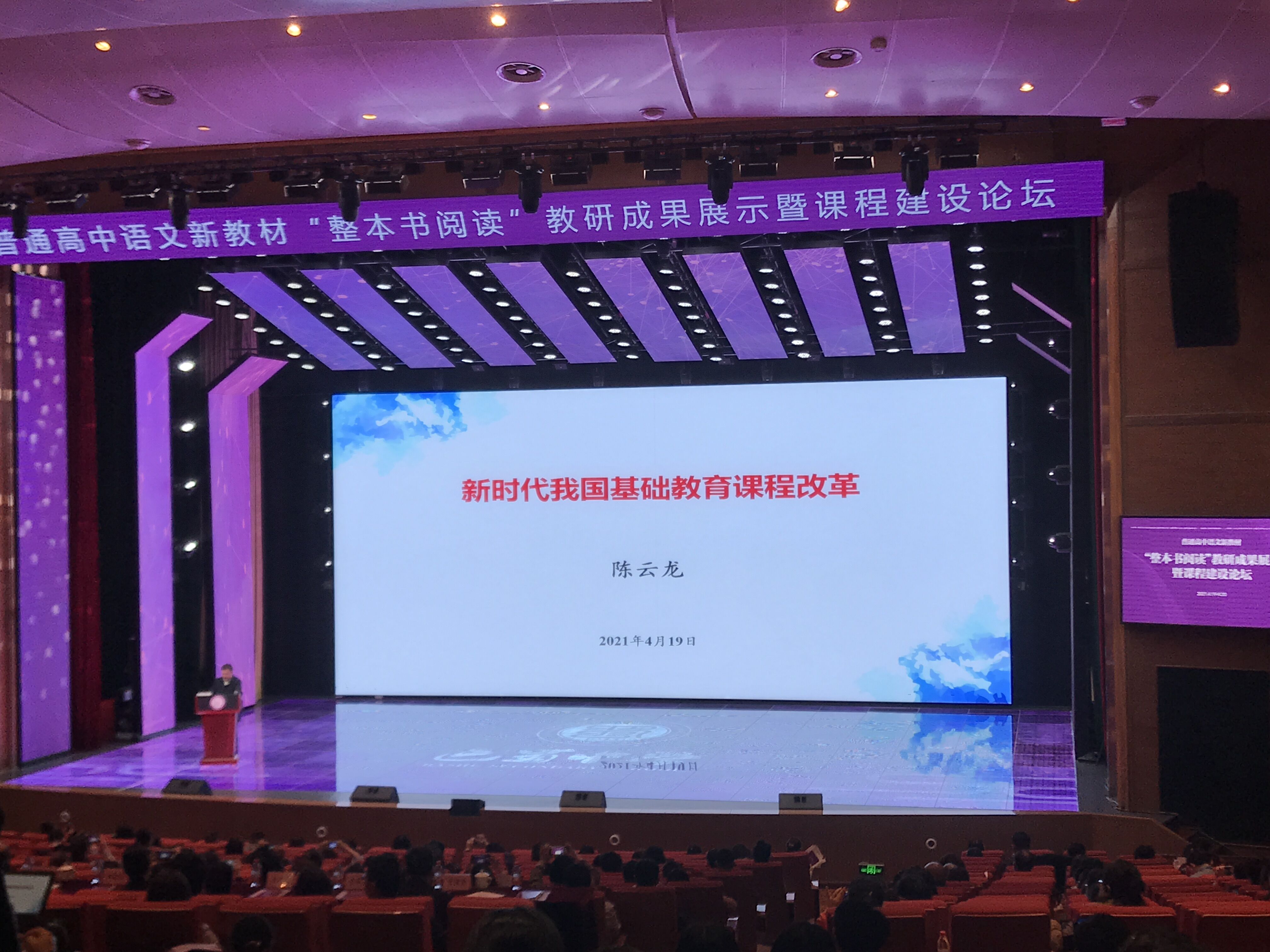 2021年4月19日—20日,“普通高中语文新教材‘整本书阅读’教研成果展示暨课程建设论坛”在重庆市巴蜀中学礼堂隆重召开。来自重庆、北京、云南、河南、山西、广东、湖北、吉林、江苏、广西、江西、甘肃、四川、山东、陕西、黑龙江、安徽、福建、贵州、辽宁、宁夏、河北等地的教研专家、一线教师和教育相关人士聚集一堂,共同探讨“整本书阅读”教学策略的新发展、新方向。全国各地万余人次一线教师和教育相关人士通过线上参与本次研讨。