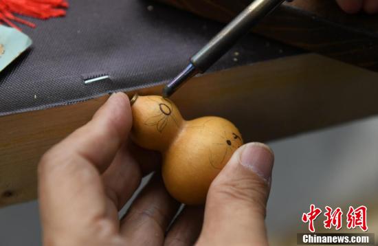 活动现场的烙画葫芦制作工艺展示。