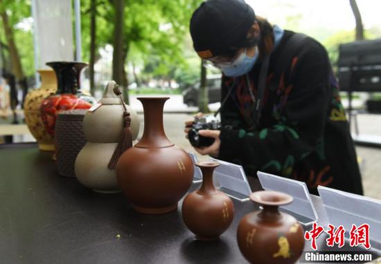 展示的荣昌陶器吸引参观者驻足拍照。