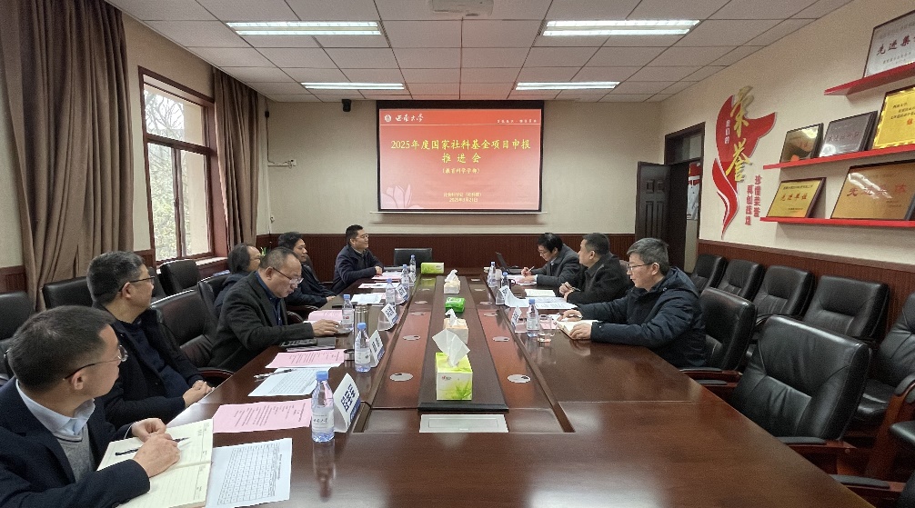 会议分社会科学学部、人文学部、教育科学学部三个学部召开,各科研单位介绍了2025年国家社科基金年度项目申报情况及后续工作安排,摸清了情况,交流了经验。
