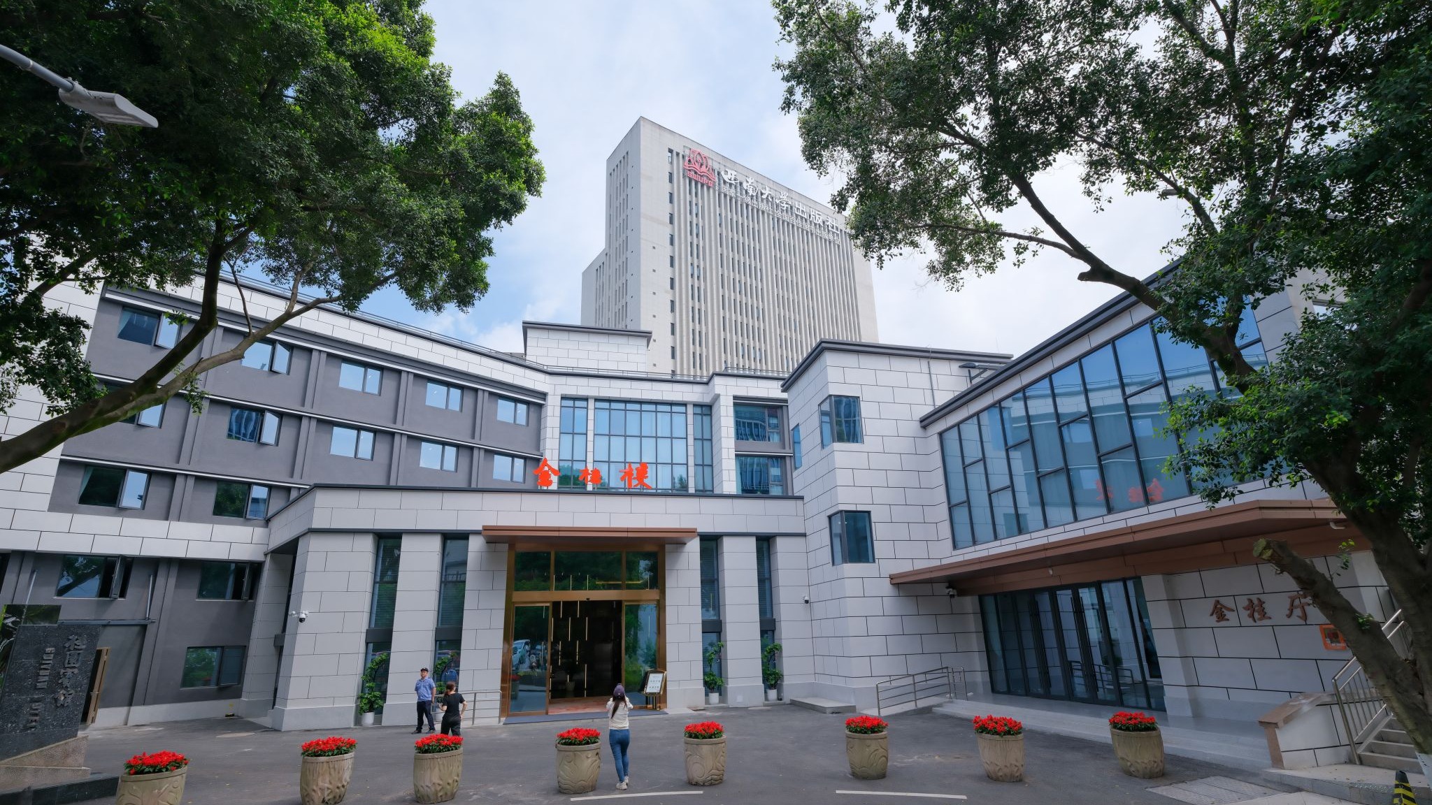 “金桂楼”,因建筑前栽种桂花树命名。本楼落成于1988年,建筑面积4297㎡,现为学校桂园宾馆。