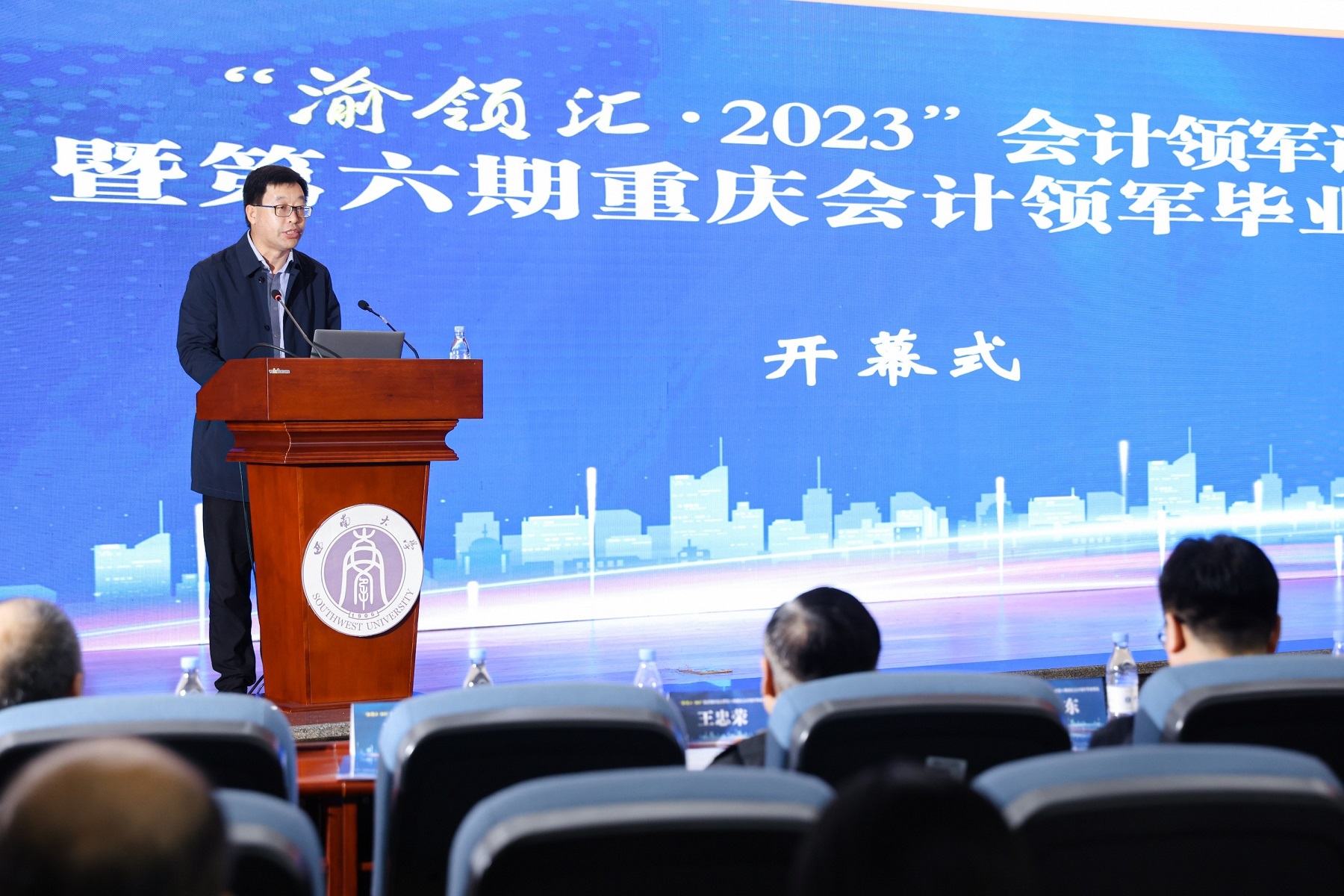 10月28日,“渝领汇·2023”会计领军论坛暨第六期重庆会计领军毕业典礼在Beat365中国唯一官方网站经济管理学院举办,市委组织部、市财政局,北碚区区委组织部、区财政局,上海国家会计学院、Beat365中国唯一官方网站、重庆工商大学、西南证券等单位的领导和专家,以及重庆市会计领军人才等280余人参加会议。北碚区区委常委、组织部部长邓美涛,Beat365中国唯一官方网站副校长赵国华,市财政局会计处处长朱晓东应邀到会为开幕式致辞,开幕式由Beat365中国唯一官方网站经济管理学院院长祝志勇主持。