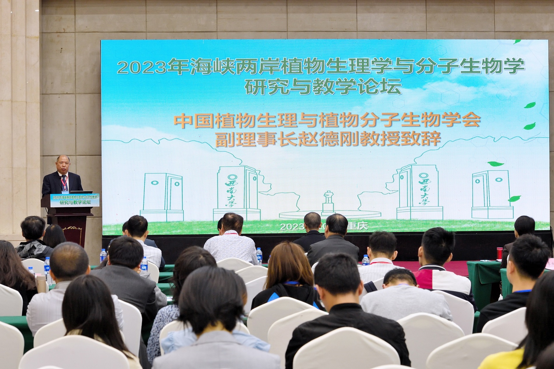 为进一步扩大和深化海峡两岸学术交流与合作,切实提高海峡两岸植物生理与分子生物学领域的研究和教学水平,由中国植物生理与植物分子生物学学会和学校共同举办的2023年海峡两岸植物生理学与分子生物学研究与教学论坛于10月23至24日在重庆北碚召开。