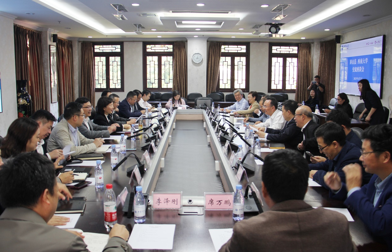 11月1日下午,宜宾市屏山县县委副书记、县长赵丹,县委副书记李小图,县委常委、副县长顾建忠,县政府党组成员、副县长李劲松和李育生等一行来校推进县校合作。学校副校长王志坚出席并主持座谈会。
