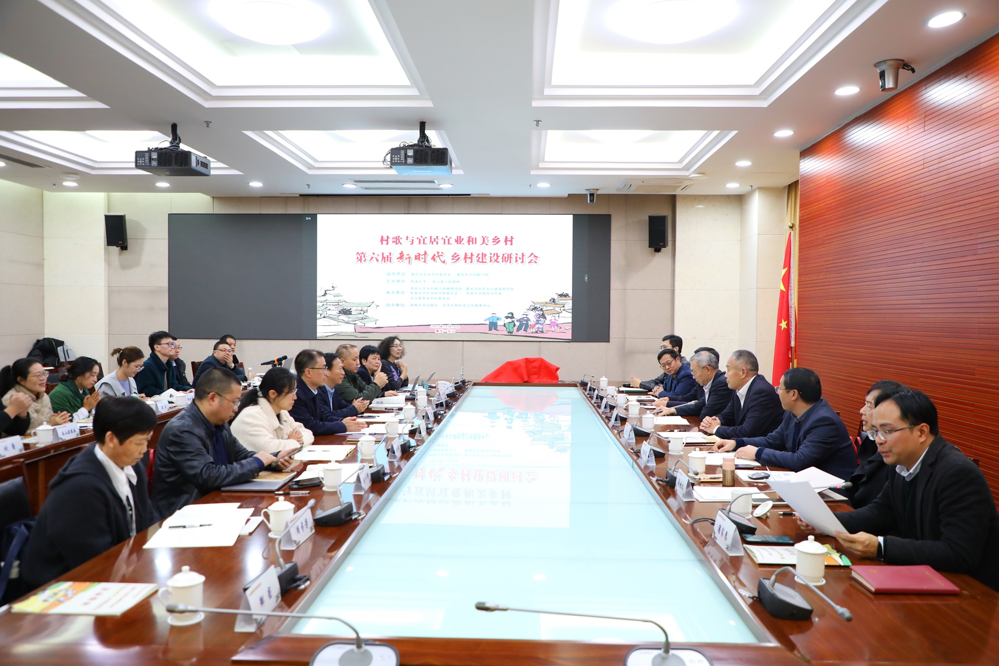 11月18日,在重庆市农业农村委员会和重庆市乡村振兴局的关心指导下,学校与巫山县人民政府共同举办主题为“村歌与宜居宜业和美乡村”的第六届新时代乡村建设研讨会暨Beat365中国唯一官方网站出版社2023年度新书《村歌嘹亮》与《我们的村歌》发布会。学校副校长葛信勇、巫山县人大常委会副主任宋传勇出席论坛,巫山县有关单位、重庆市和美乡村建设研究院、北京乐和社会工作服务中心以及学校国内合作处、学校出版社等参加活动。