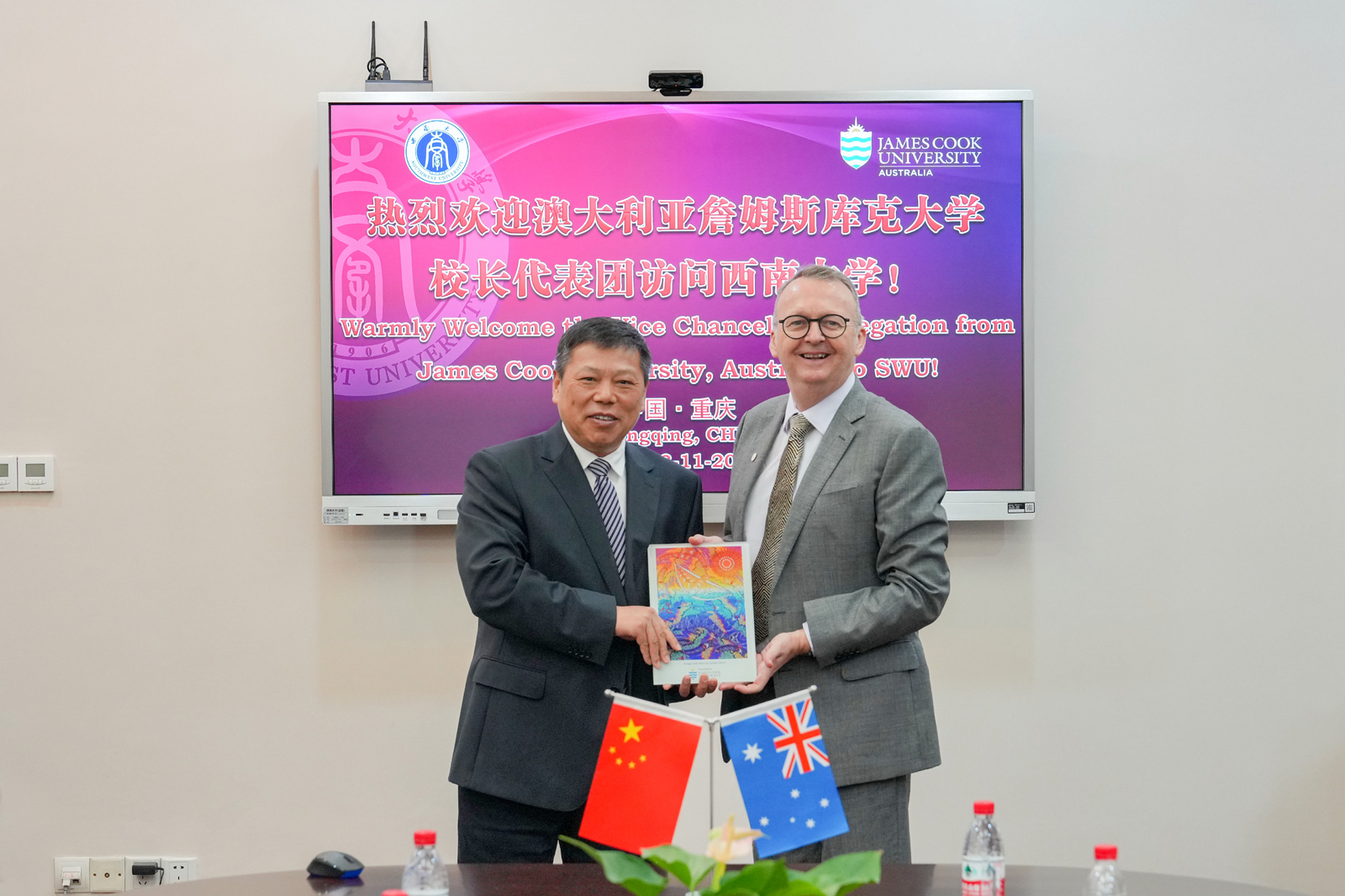 代表团随后赴动物科学技术学院听取学院负责人对该项目运作情况的详细报告。比格斯校长表示,詹姆斯库克大学为学生设立了特别奖学金,鼓励更多西大学子赴澳学习。此外,詹姆斯库克大学将专聘一位学术协调员常驻重庆,进行教学与管理方面的协调工作,保证项目顺利运行。双方还就举办短期交流项目、家长见面会及共同进行招生宣传、联合培养博士等方面达成共识。最后,代表团与各年级学生见面,回答同学们有关项目教学及澳洲生活学习等问题。