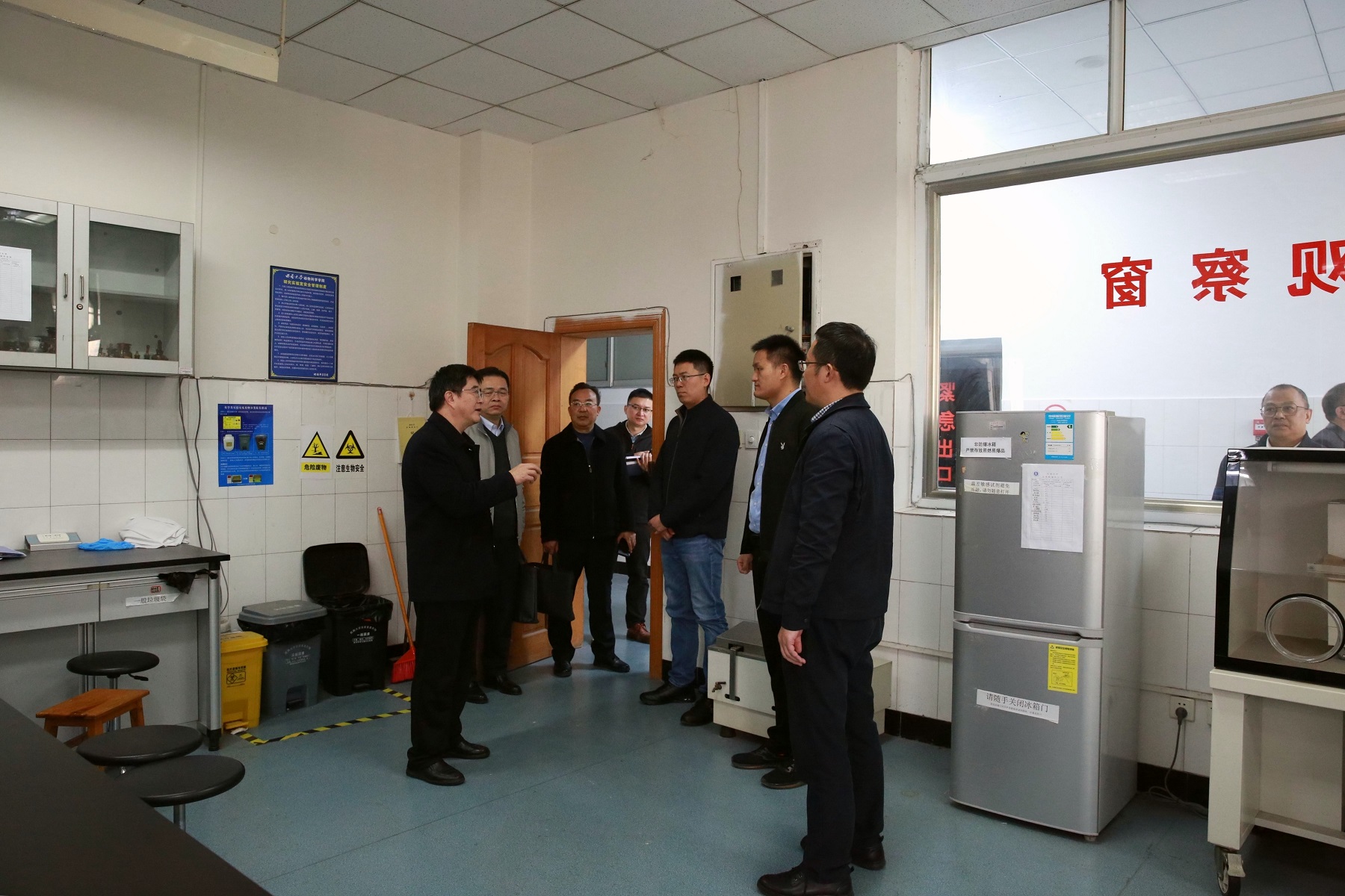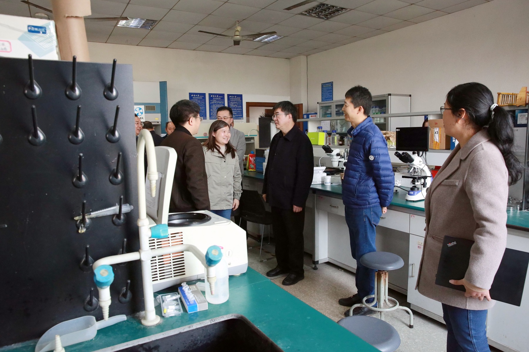 11月22日上午,校党委书记李旭锋以“四不两直”方式到荣昌校区调研指导工作。李旭锋先后到荣昌校区党工委、管委会,荣昌校区实验教学中心,动物科学技术学院,商贸学院,水产学院,动物医学院等单位,实地察看各单位干部职工工作情况,详细了解今年重点工作落实情况。李旭锋对各单位本年度工作取得的成绩及教职工饱满的工作热情、良好的精神状态、务实的工作作风给予充分肯定,与各单位交流探讨了接下来面临的重点任务,并就具体问题提出了指导性意见。