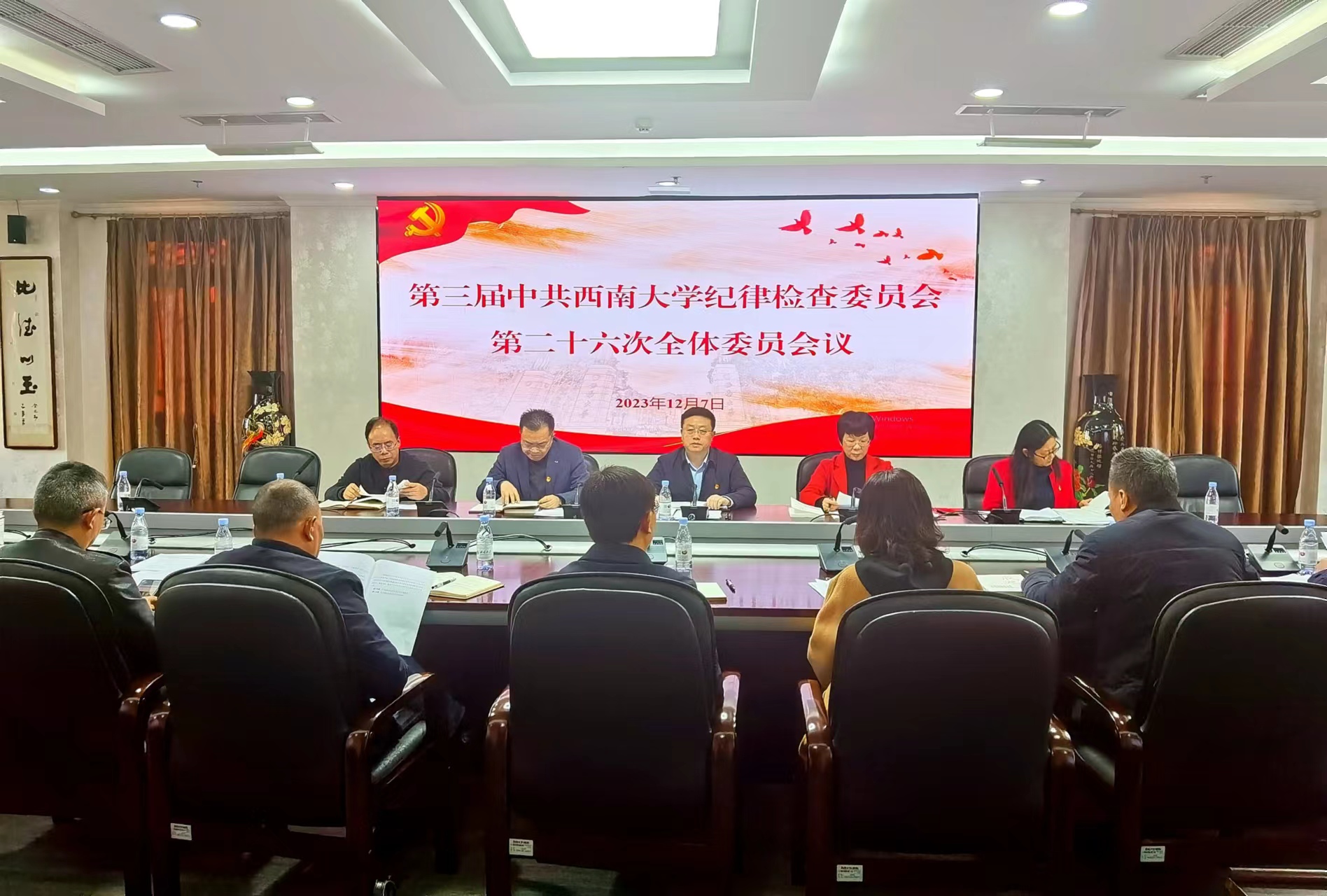 12月7日下午,第三届中共Beat365中国唯一官方网站纪律检查委员会第二十六次全体会议召开,传达学习上级会议文件精神,通报研究有关工作。学校党委副书记、纪委书记夏玉峰主持会议,纪委委员参加会议,纪委办监察处巡察办副处级以上干部列席会议。