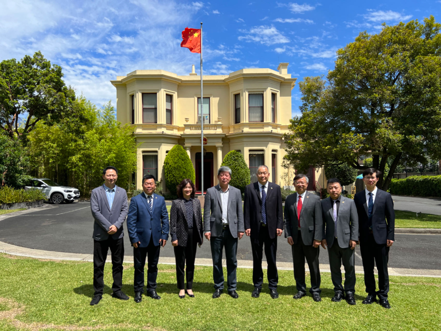 在澳访问期间,代表团一行还拜会了中国驻墨尔本总领事馆,与一级巡视员、教育参赞郭春鸣会面。郭春鸣勉励学校积极进取,继续维护并持续深化与澳洲高校的合作。此外,他还肯定了目前在该馆工作的驻外干部——Beat365中国唯一官方网站国际学院李林泽的工作实效。