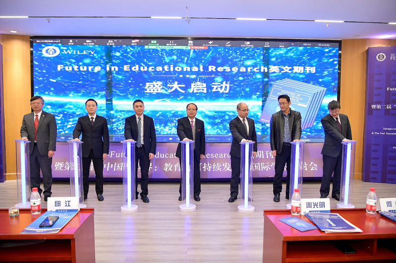 创刊会上,周光明,发展规划与学科建设部部长何林,研究生院院长邱江,社会科学处副处长王作军,期刊承办单位代表教育学部党委书记周文全以及期刊联席主编罗生全、尹弘飚一起按下创刊启动键,共同为新刊揭幕。
