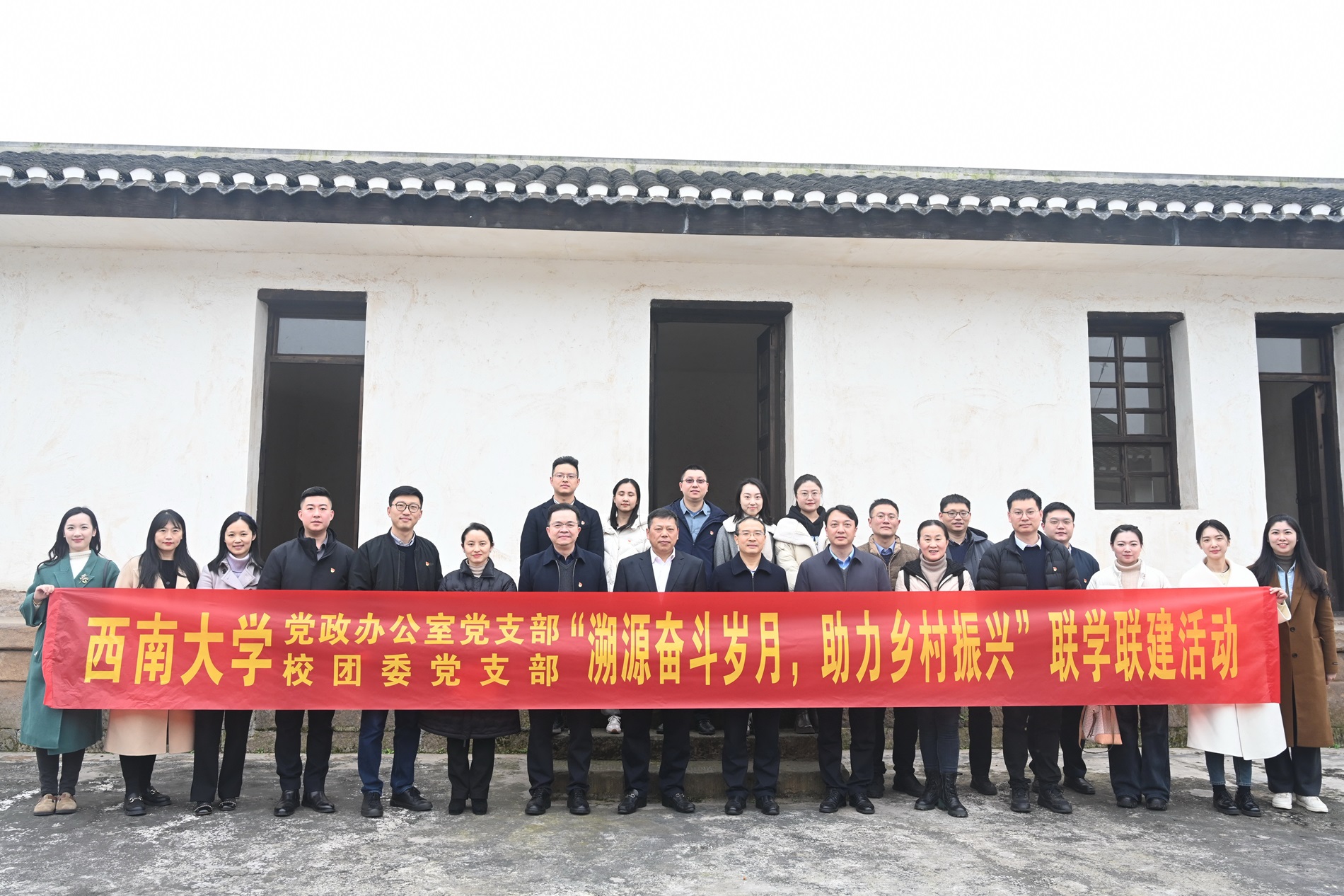 为深入学习贯彻习近平新时代中国特色社会主义思想,坚持围绕中心、服务大局,凝聚合力提升基层党组织党建工作实效,1月12日,校党政办公室党支部与校团委党支部前往江津区开展“溯源奋斗岁月,助力乡村振兴”联学联建活动。校长张卫国、机关党委常务副书记高岩和支部党员参加活动。