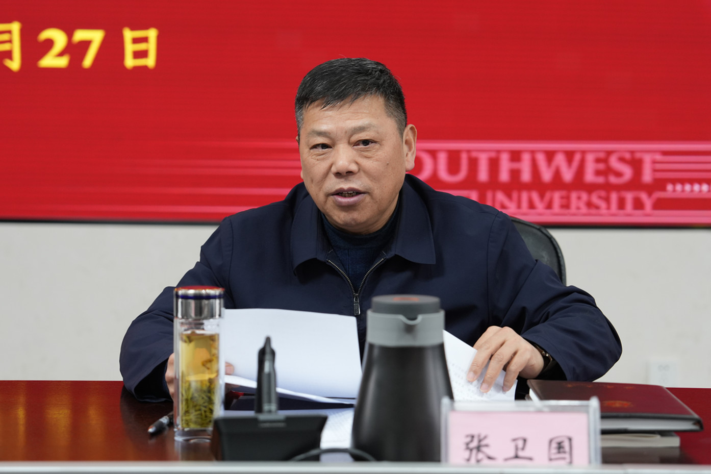 按照市委统一部署,2月27日下午,学校召开2024年第一次党委理论学习中心组专题学习会,深入学习领会习近平总书记关于党的建设的重要思想、对重庆作出的重要指示批示精神以及教育部有关文件精神。全体在校校领导、党委常委参加。党委书记李旭锋主持会议。
