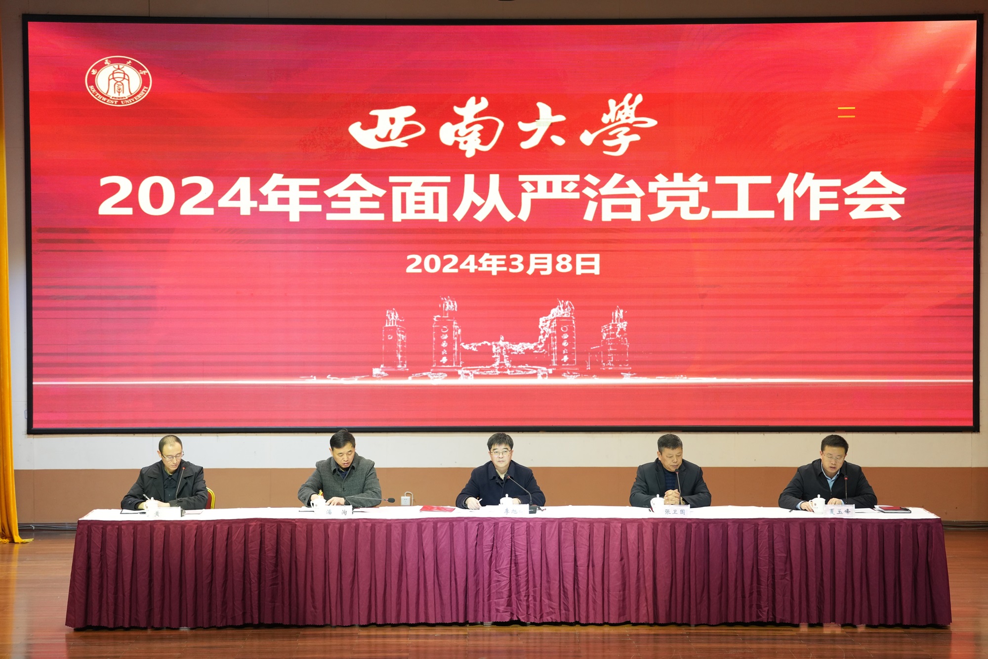 李旭锋强调,2024年是实现“十四五”规划目标任务的关键一年,也是学校的“赋能提质之年”。 全校上下必须全面贯彻党的二十大精神和二十届二中全会精神,深入落实二十届中央纪委三次全会精神,坚持稳中求进、以进促稳、先立后破,巩固拓展主题教育成果,持续发力、纵深推进全面从严治党,为学校快速推进研究型大学建设提供坚强保障。一要深刻领悟“两个确立”的决定性意义,以实际行动把“两个维护”落到实处;二要全面贯彻新时代党的组织路线,不断严密组织体系、建强高素质干部人才队伍;三要坚持“三不腐”一体推进,聚焦铲除土壤条件深化反腐败斗争;四要持之以恒强化正风肃纪,把严的基调、严的措施、严的氛围长期坚持下去;五要强化安全意识和防范化解风险本领,推动学校保持安全稳定良好局面;六要切实做到守土有责守土尽责,推动管党治校政治责任贯通联动、一体落实。