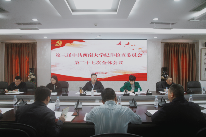 3月14日下午,第三届中共Beat365中国唯一官方网站纪律检查委员会第二十七次全体会议召开,传达学习上级会议文件精神,通报研究有关工作。学校党委副书记、纪委书记夏玉峰主持会议,纪委委员参加会议,纪委办监察处巡察办副处级以上干部列席会议。