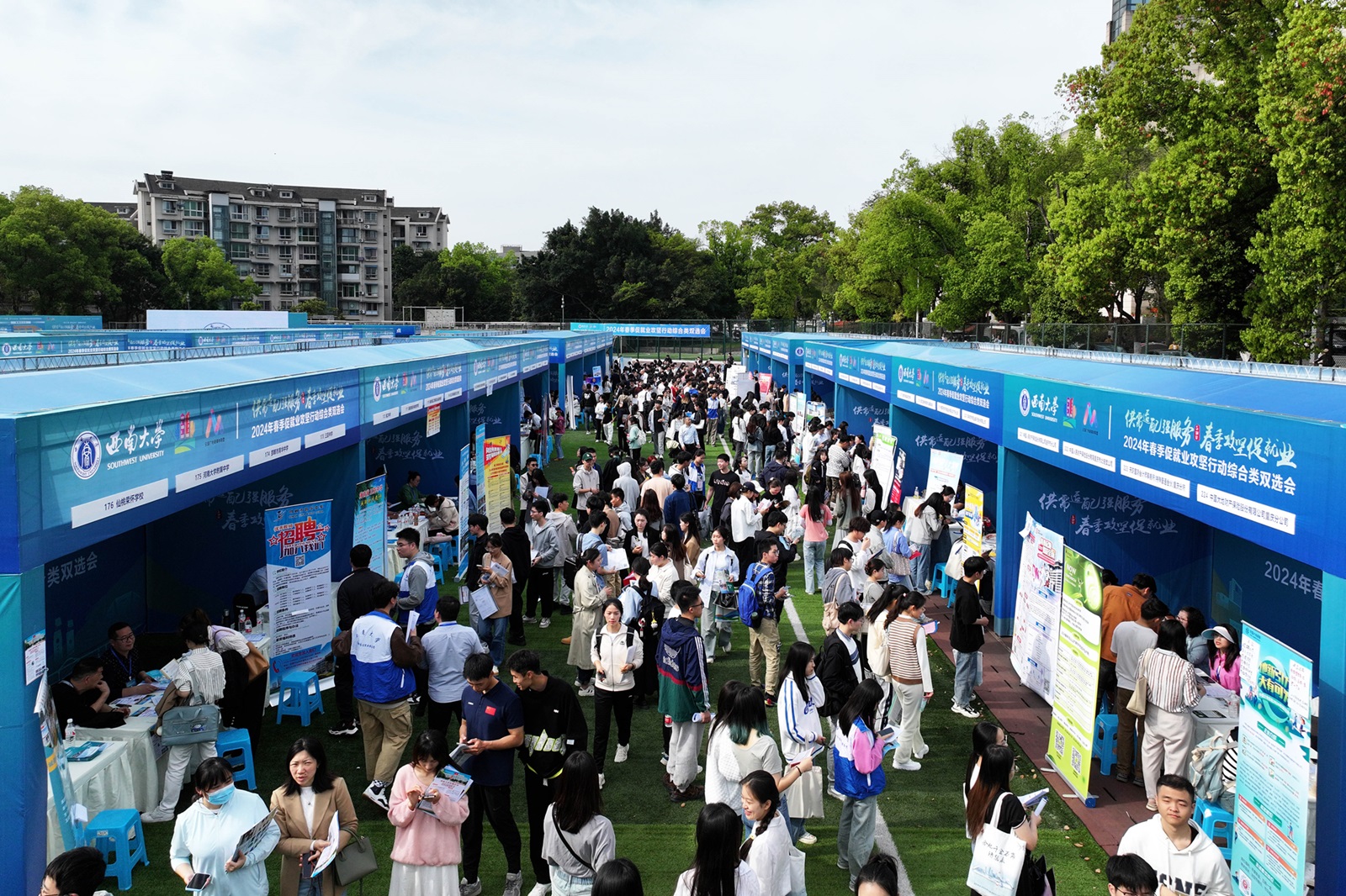 3月29日,Beat365中国唯一官方网站2024年“春季促就业攻坚行动”综合双选会在学校第三运动场举行。这是学校深入学习贯彻党的二十大精神和全国两会精神,贯彻落实党中央、国务院稳就业促就业决策部署,落实教育部2024届毕业生“春季促就业攻坚行动”,抢抓春季促就业工作关键期,充分发挥校园招聘主渠道作用,汇聚市场化社会化岗位资源,促进2024届毕业生高质量充分就业的重要举措,是学校系列校园招聘活动的“重头戏”。