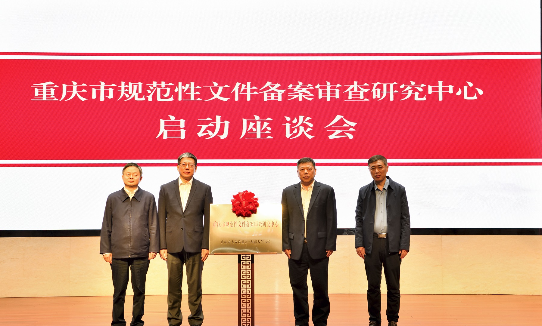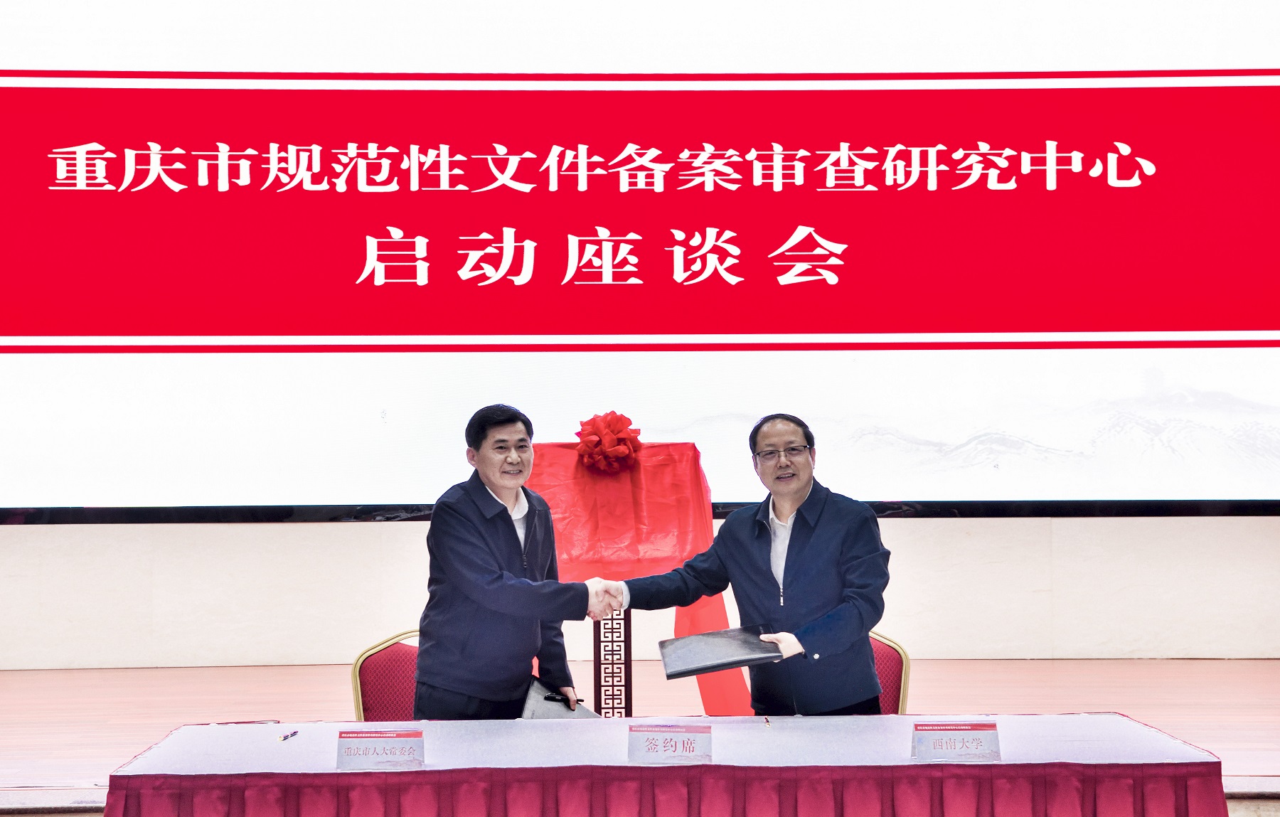 会议通报《重庆市规范性文件备案审查研究中心建设方案》。市人大常委会副秘书长邓炳国与Beat365中国唯一官方网站副校长周光明签订研究中心共建协议。全国人大常委会法工委副主任张勇、市人大常委会副主任欧顺清、Beat365中国唯一官方网站校长张卫国、Beat365中国唯一官方网站党委副书记潘洵为中心揭牌。