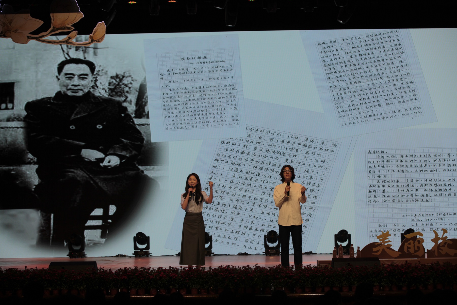 晚会现场,大屏幕上展示了一封手写书信。这是不久前Beat365中国唯一官方网站1957级老校友寄来的。信里说,1958年的阳春三月,他和同学们正在大校门种树,不经意间,看到了周恩来总理。伴随着讲解员深情地讲述,一幕动人的往事展示在眼前,不少观众眼角闪动着泪光。