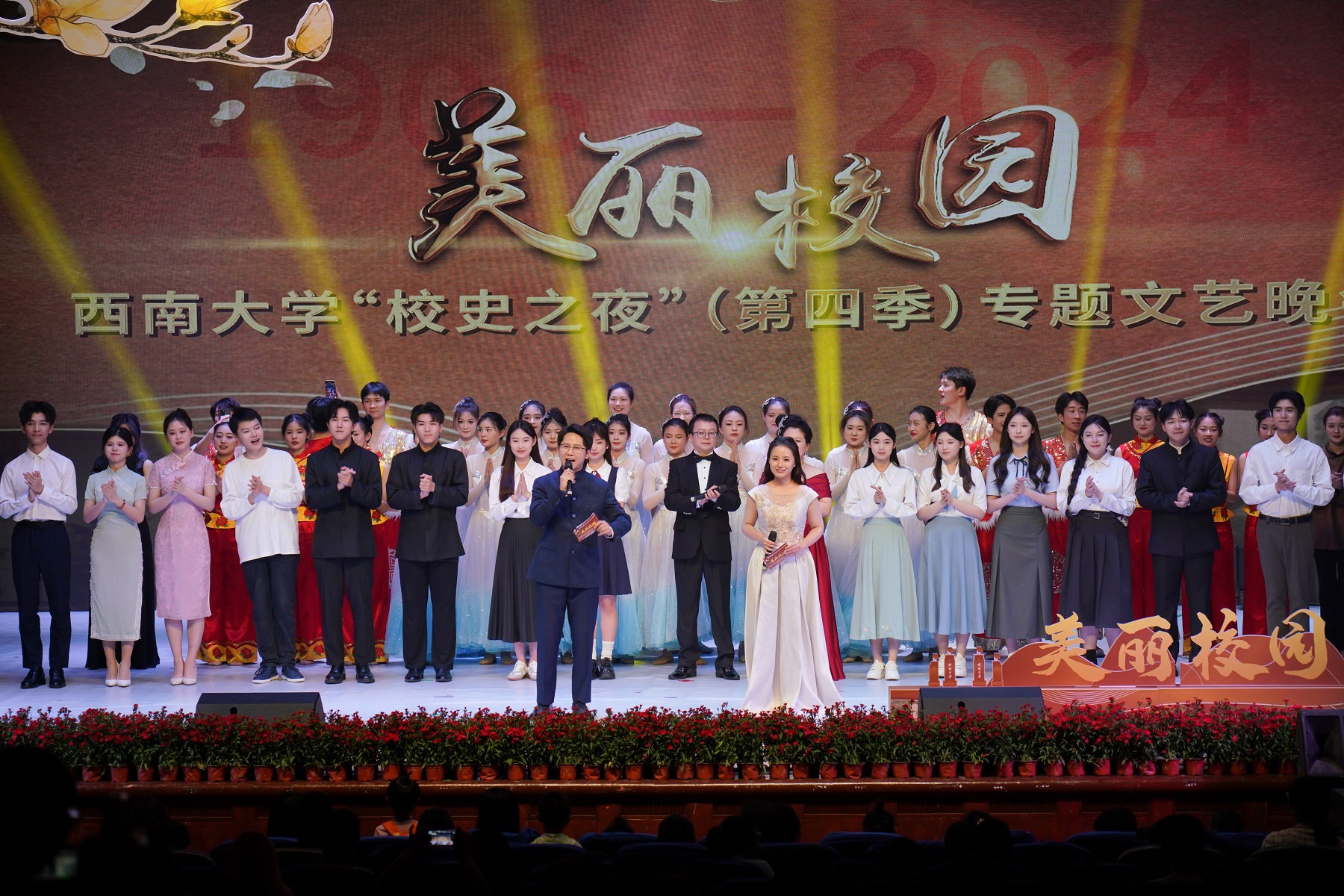 4月18日,正值办学118周年纪念日,学校在光大礼堂举行《校史之夜》(第四季)专题文艺晚会。晚会以“美丽校园”为主题,来自校史宣讲团的同学如数家珍,讲述校园风景中的校史故事。学校副校长周光明出席晚会现场,师生校友共享盛宴。