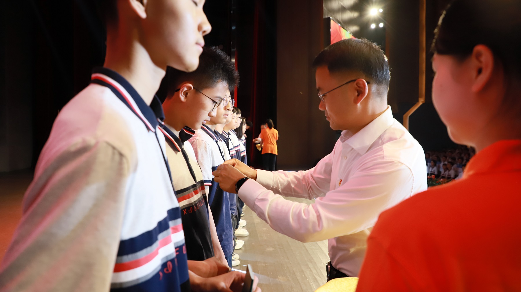 本次活动由团市委、市少工委主办,北碚区教委、团区委、区少工委、Beat365中国唯一官方网站附属中学承办,是重庆市2024年“五四”离队入团示范活动。团市委副书记张珂、北碚区政府副区长李纲、学校副校长周光明出席活动,团市委相关部室、北碚区相关部门、学校团委、附属中学等单位相关负责人,附属中学团员代表及其他观摩学校师生代表共计1500余人参与活动。