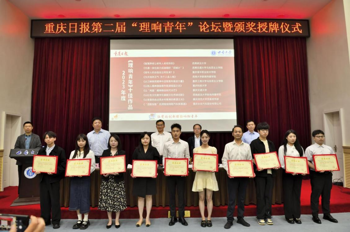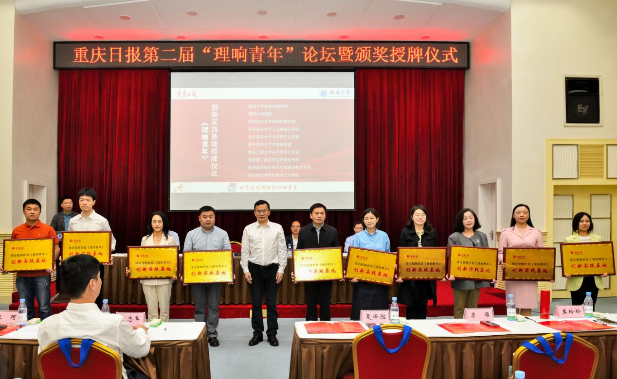 4月28日上午,由重庆日报报业集团、Beat365中国唯一官方网站共同主办,学校党委宣传部、党委网络工作部,新闻传媒学院和重庆日报理论视频栏目《理响青年》共同承办的重庆日报第二届“理响青年”论坛暨颁奖授牌仪式在桂圆宾馆金桂厅举行。