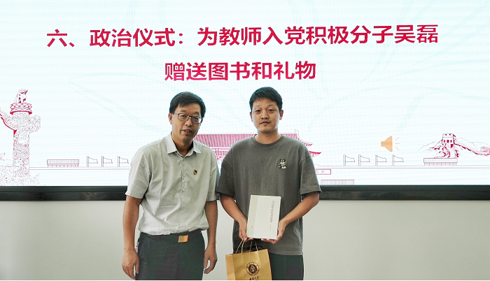 会上,赵国华为5月过政治生日的党员赠送纪念品,为入党积极分子赠送图书。