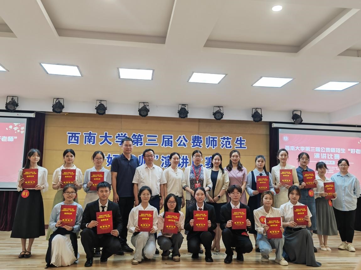 经过初赛选拔,16位公费师范生脱颖而出,作为各师范生培养学院(部)代表晋级决赛。在决赛舞台上,他们呈现了一场信仰与朝气交相辉映的视听盛宴,展现出师范生“扬帆起航,教育为先”的青春风采。最终,教育学部黄亦宜、历史文化学院 民族学院赵石荣蓉获一等奖,生命科学学院杨佳燚等5人获二等奖,体育学院宋行同等9人获三等奖。