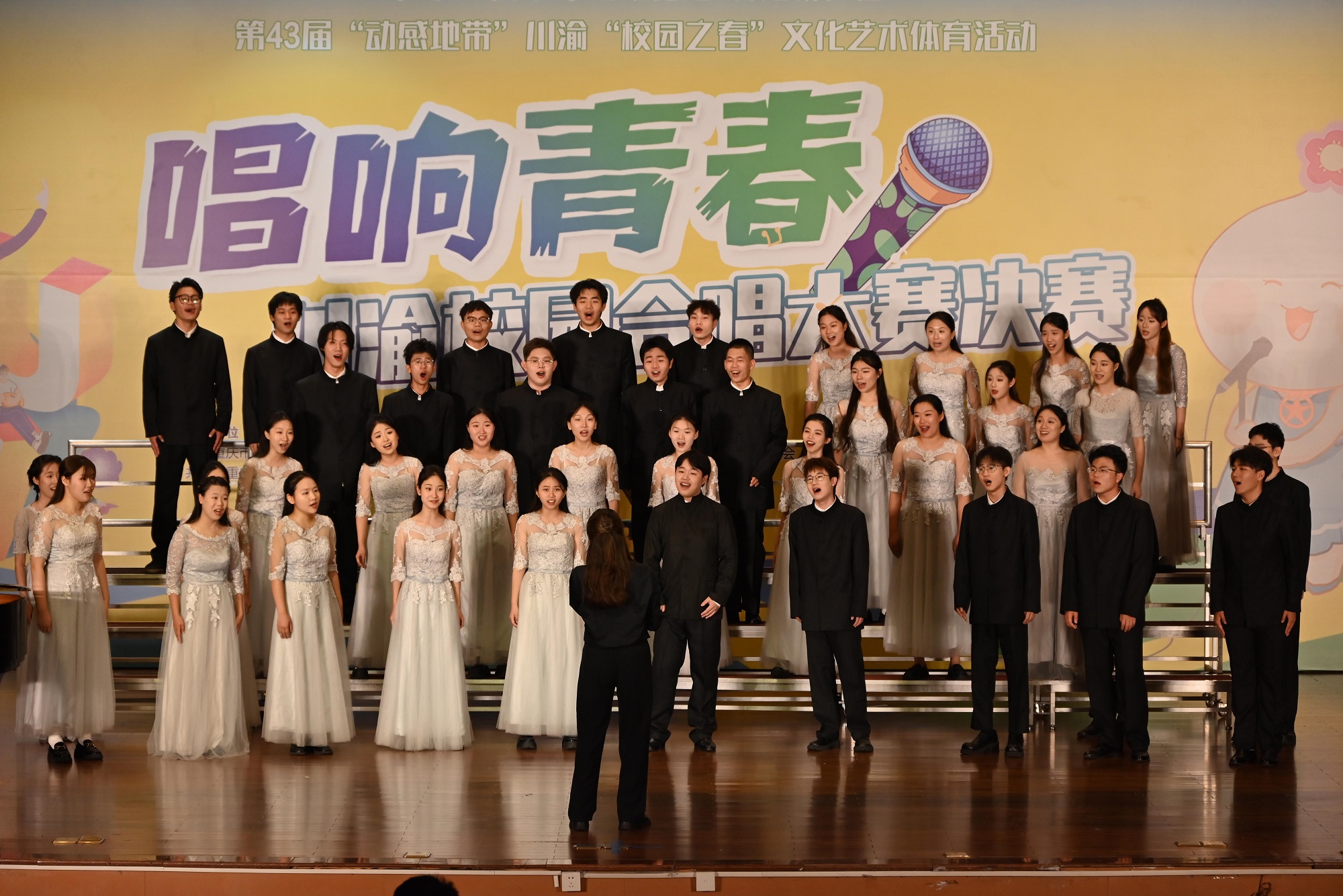 5月19日下午,由中共重庆市委宣传部、中共重庆市委教育工委、重庆市教委、重庆市体育局、共青团重庆市委、共青团四川省委、重庆市学联、四川省学联联合主办的第43届“动感地带”川渝“校园之春”文化艺术体育活动之“唱响青春”川渝校园合唱大赛决赛在学校顺利举办。共青团重庆市委副书记贺秀山、学校党委副书记黄杰出席活动,共青团重庆市委、学校共青团等相关部门负责人及1000余名高校师生代表共同参加。