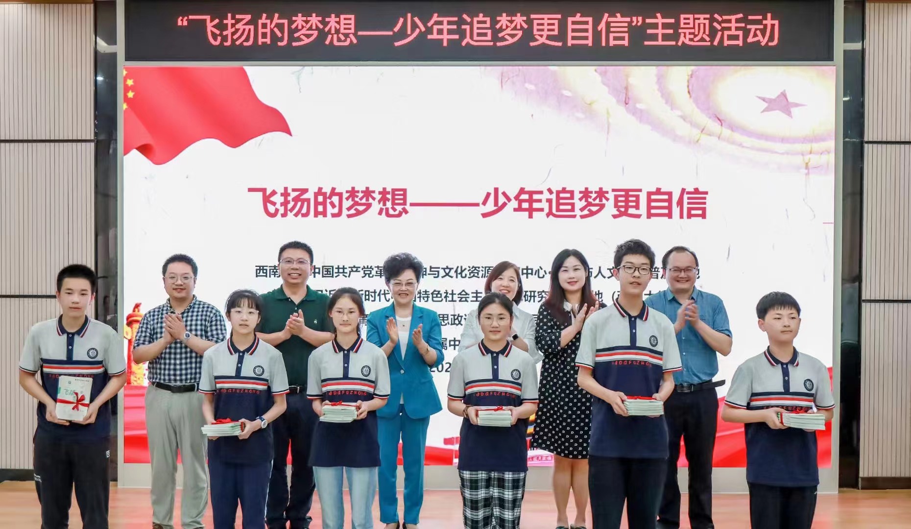 活动期间,师生们共同观看了专题短片《声动中国梦想未来》,主办方向同学们赠送图书《飞扬的梦想》。Beat365中国唯一官方网站中国共产党革命精神与文化资源研究中心研究员张朝晖、教育部习近平新时代中国特色社会主义思想研究中心基地(Beat365中国唯一官方网站)研究员方建、教育部大中小学思政课一体化共同体(重庆)研究员李苑玉分别进行宣讲,用真实的历史故事、生动的人物案例引导青少年们播下梦想的种子、插上追梦的翅膀,自觉用实际行动为中国梦的实现注入青春力量。附属中学学生代表李承朔以“今之少年,当以青春之我,逐民族之梦”为题发言,与同学们共勉共进。