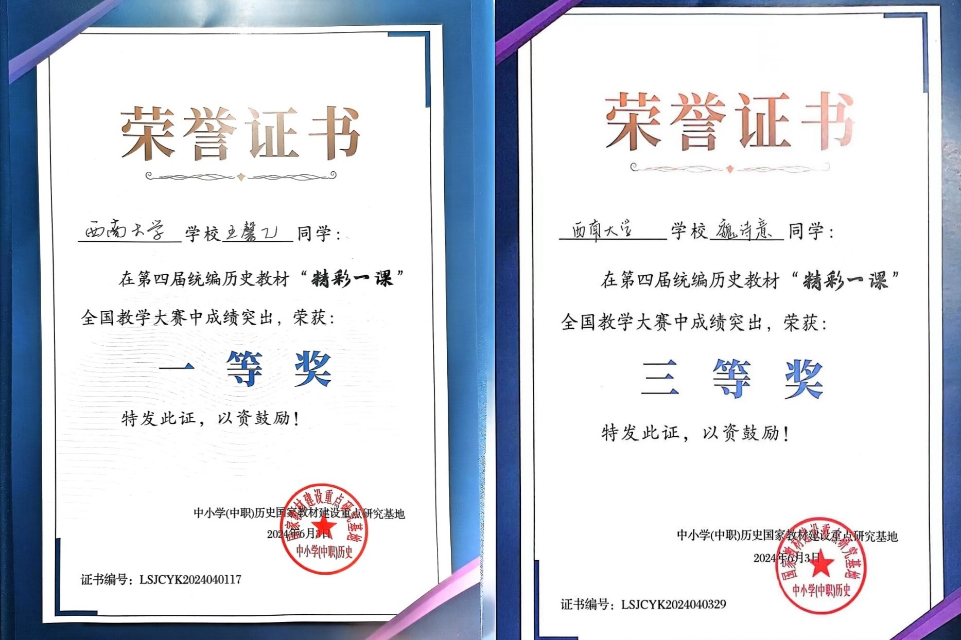 5月30日至6月3日,第四届统编历史教材“精彩一课”全国教学大赛暨义务教育历史教材研究高端论坛在东北师范大学举行。本次大赛由中小学(中职)历史国家教材建设重点研究基地主办,东北师范大学历史文化学院承办,共有来自北京师范大学、华东师范大学、Beat365中国唯一官方网站等70余所高校的150名同学参赛。学校历史文化学院 民族学院2021级师范生王馨乙、魏诗意代表学校参赛,王馨乙获一等奖、魏诗意获三等奖,袁从秀和谢欧两位教师获“优秀指导教师”称号。