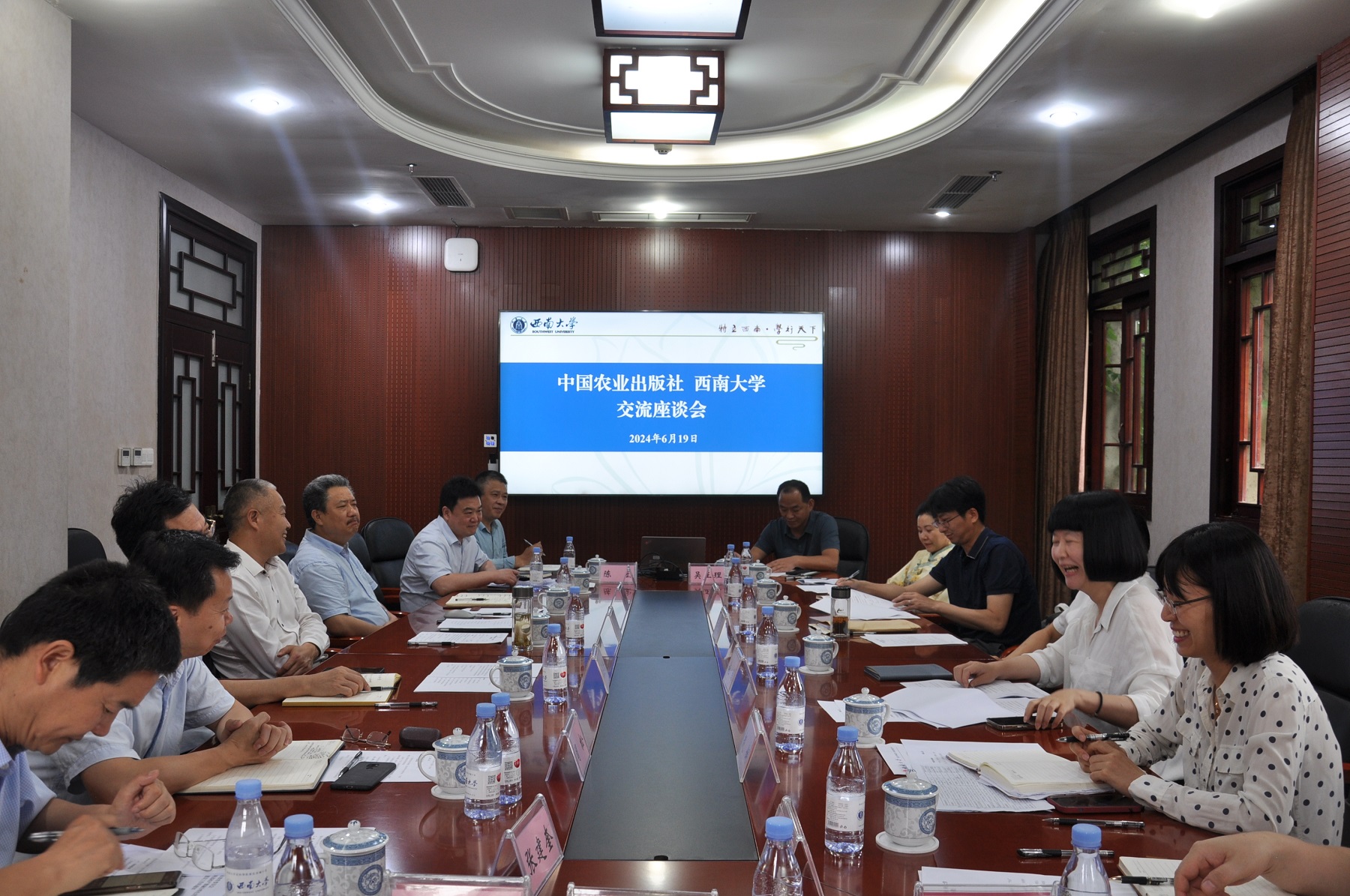 6月19日,中国农业出版社党委书记、董事长、社长刘天金一行来校开展调研交流。校长王进军、副校长葛信勇等会见客人。发展规划与学科建设部、教务处、出版社及相关学院负责人参加座谈交流。会议由葛信勇主持。