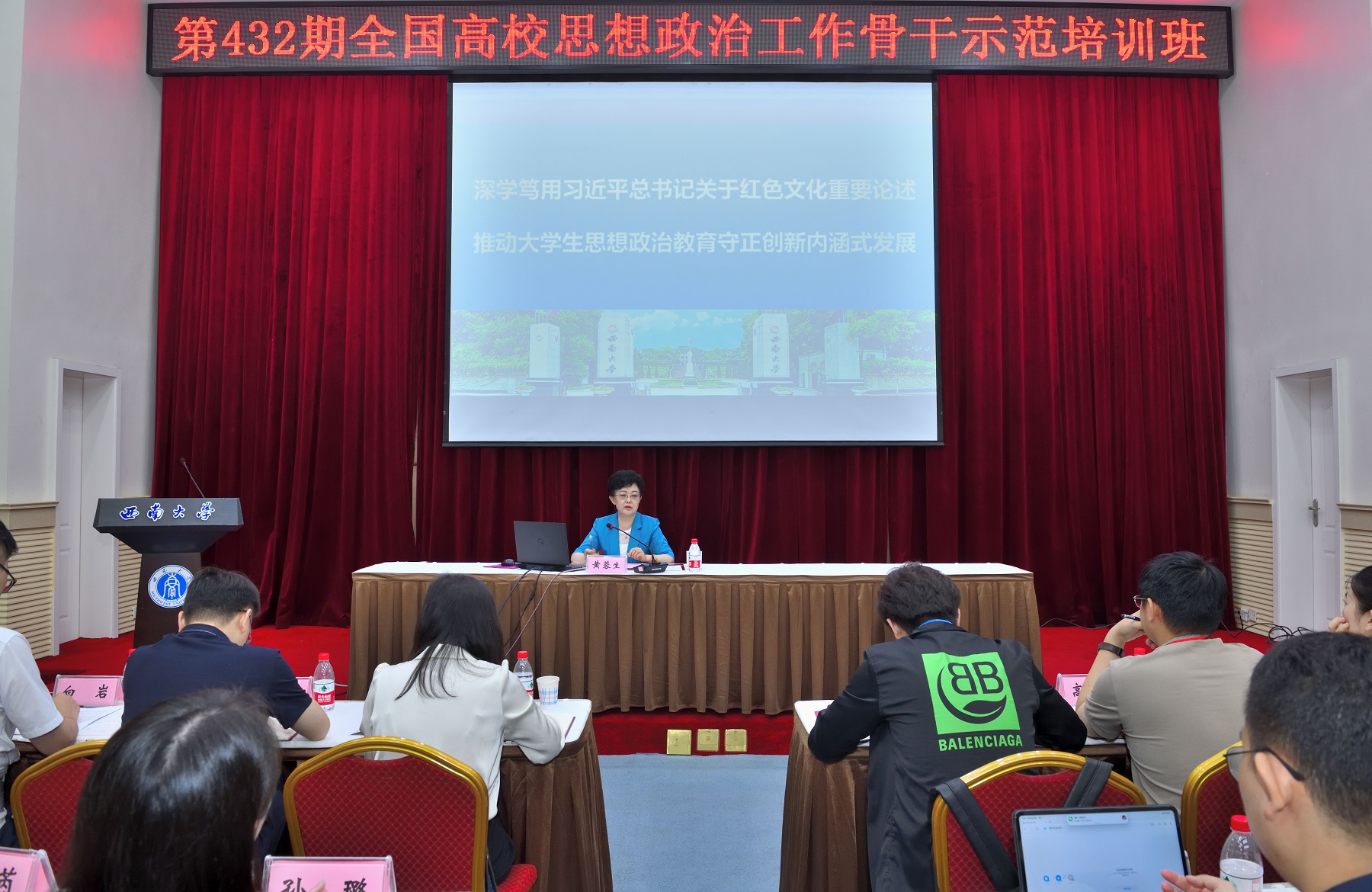 此次培训还邀请了“时代楷模”“万人计划教学名师”“全国优秀老师”曲建武教授、重庆师范大学原党委书记邓卓明教授、Beat365中国唯一官方网站党委副书记潘洵教授等知名专家作辅导报告,并安排参训学员赴红岩革命历史博物馆等实践基地进行现场学习。