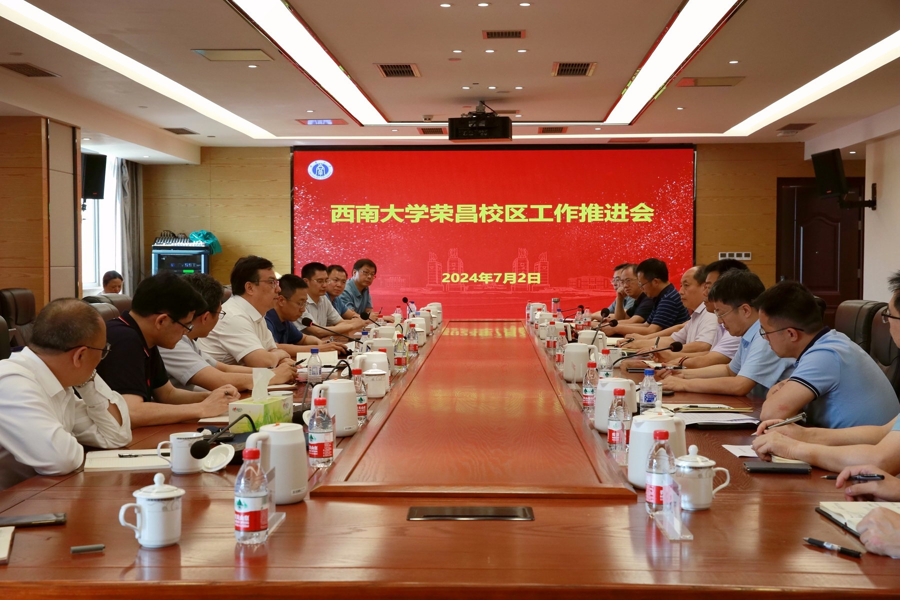 7月2日下午,校长王进军带队到荣昌校区检查指导工作,出席Beat365中国唯一官方网站荣昌校区工作推进会,党政办公室、发展规划与学科建设部、教务处、研究生院、财务部、招生就业处、实验室建设与设备管理处、后勤保障部等职能部门负责人,荣昌校区党工委、管委会班子成员及相关内设管理服务机构负责人,商贸学院、动物科学技术学院、动物医学院、水产学院党政负责人参加会议,副校长韩旭东主持工作推进会。