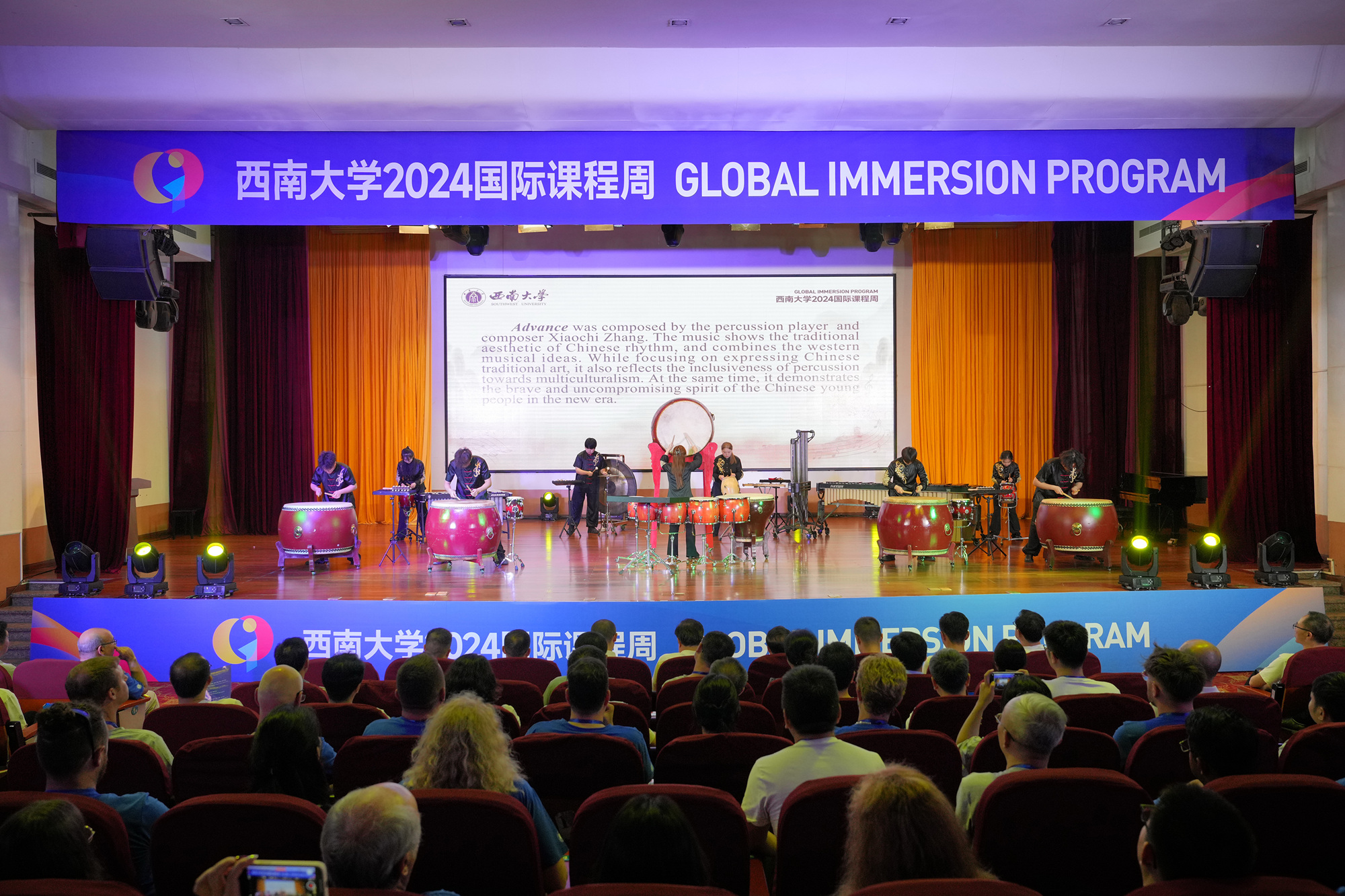 开幕式期间,音乐学院师生为现场嘉宾呈现了一场高潮迭起的欢迎音乐会,通过中华民族曲目与西方交响乐作品的合奏诠释了和而不同、美美与共的文化交流之道。