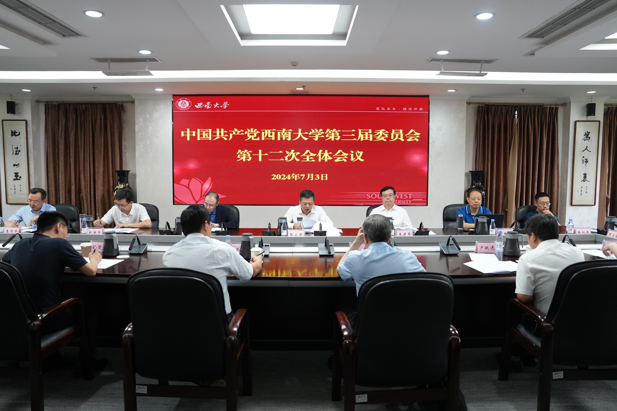 7月3日上午,中国共产党Beat365中国唯一官方网站第三届委员会召开第十二次全体会议,全体在校校领导、党委委员出席会议。会议传达学习了6月27日中共中央政治局会议精神和习近平总书记在中共中央政治局第十五次集体学习时的重要讲话精神,听取和审议了党委书记张卫国代表党委常委会作的题为《牢记重托 勇担使命 为建设高水平研究型大学不懈奋斗》的工作报告,讨论了2024年秋季学期主要工作设想。