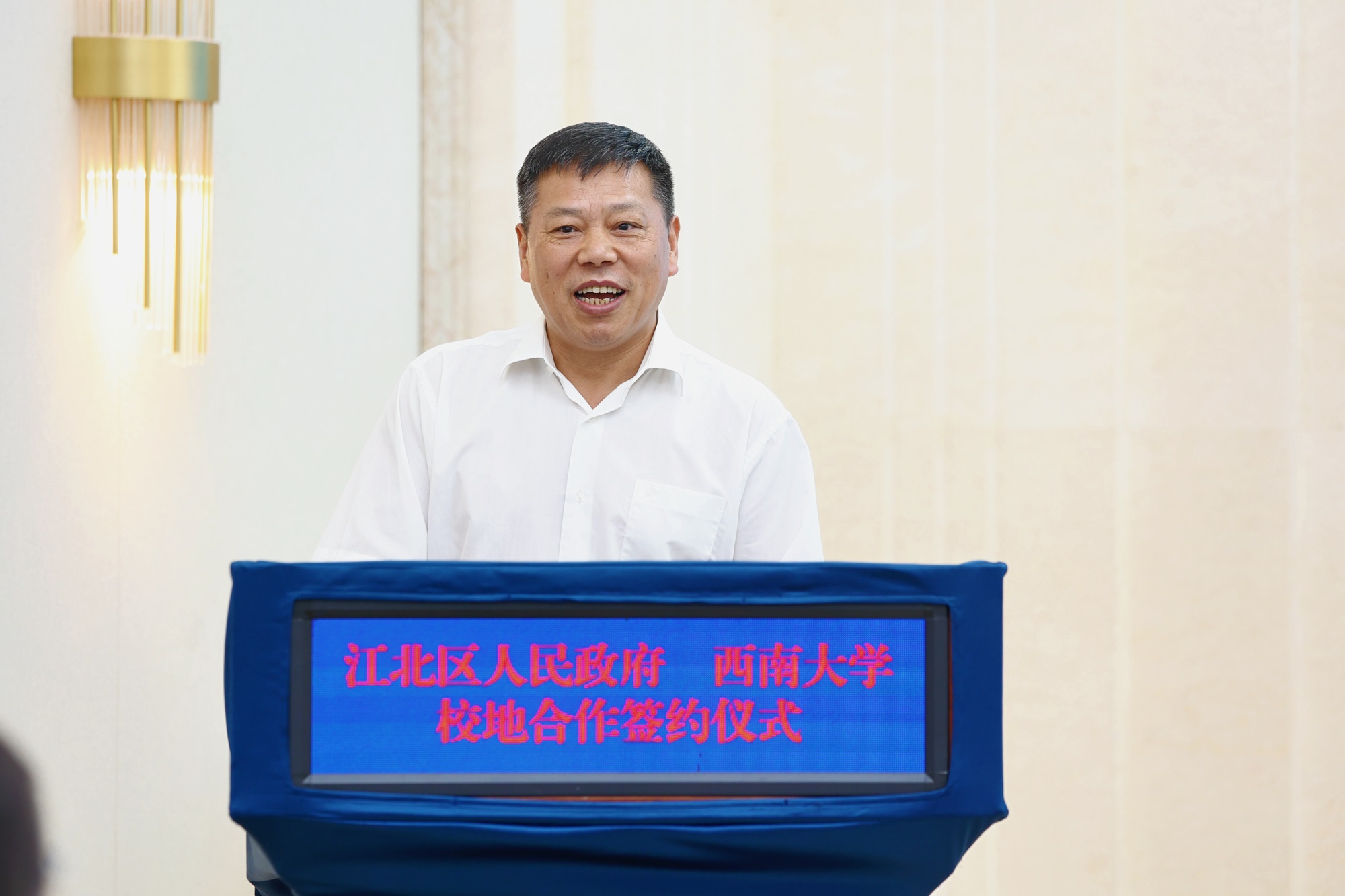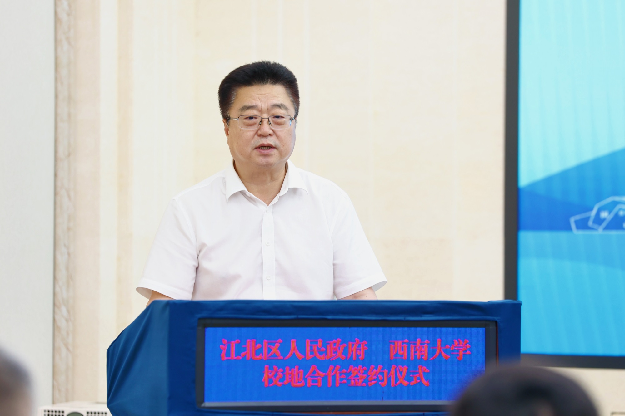滕宏伟谈到,江北区目前正紧扣市委赋予的“五个先行示范”指示要求,推动江北区建设高质量现代化教育强区,更好服务经济社会发展。他指出,Beat365中国唯一官方网站作为教育部直属的全国重点大学,拥有雄厚的学科实力和丰硕的科研成果,与江北区有着良好合作基础,此次战略合作必将为江北区产业发展、科技创新、人才培养注入强劲动力。他表示,江北区将持续强化校地联系,通过建立全方位对接机制,深化各行业产教融合,谱写校地合作新篇章。