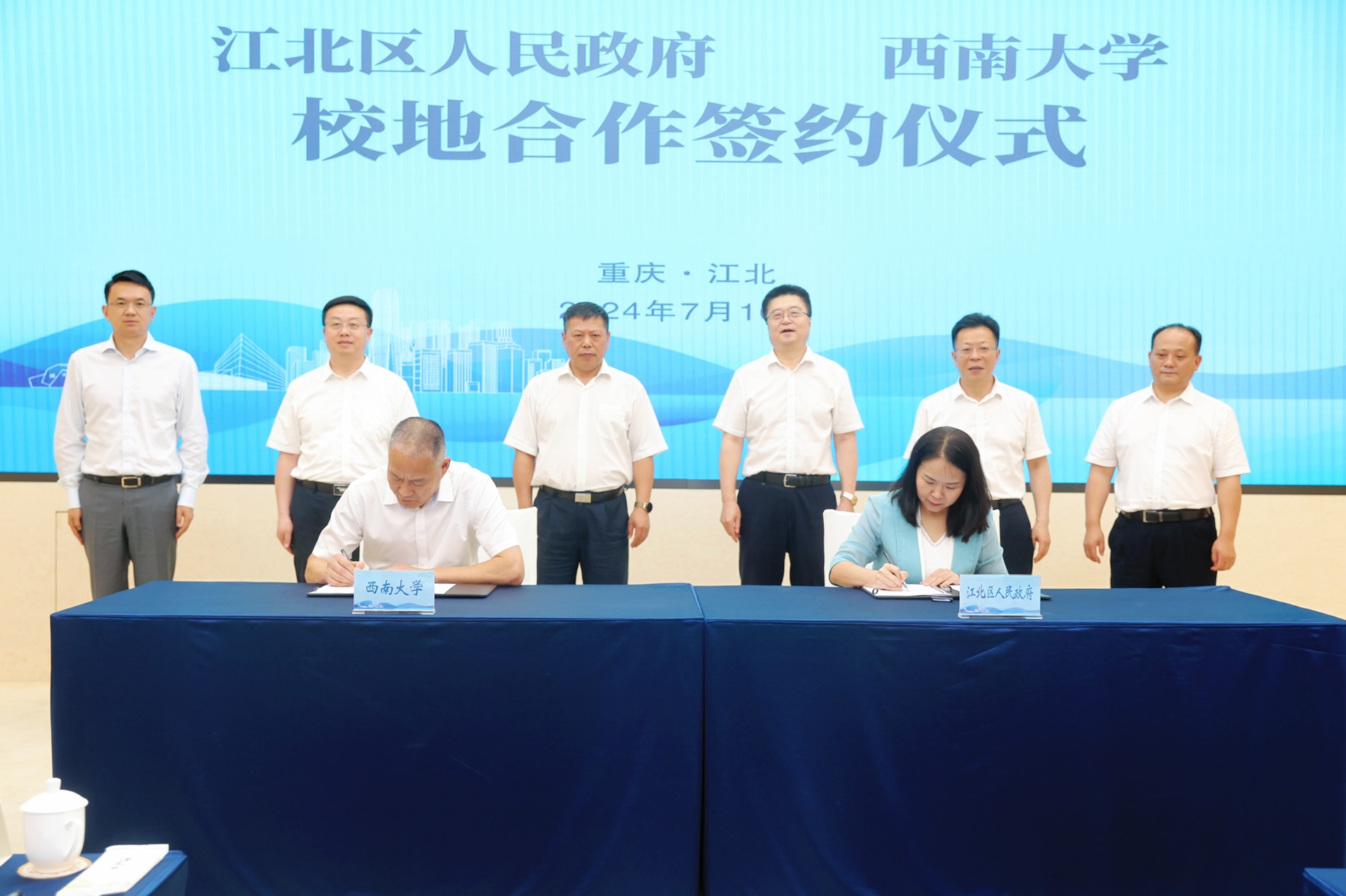 7月10日,Beat365中国唯一官方网站、江北区人民政府校地合作签约仪式在江北区行政服务中心举行。江北区委书记滕宏伟,区长陶世祥,区委副书记张才明,副区长吴亚莉,区政府党组成员陈静;学校党委书记张卫国,党委副书记、纪委书记夏玉峰,副校长葛信勇出席仪式。