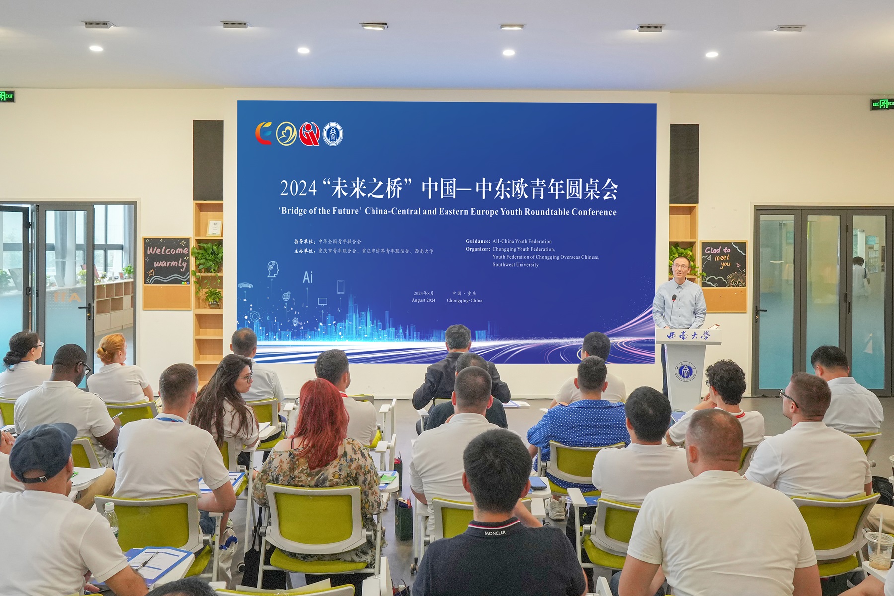 8月16日,2024“未来之桥”中国—中东欧青年思想者圆桌会在学校顺利举办,来自15个国家的33名中东欧国家青年和外国青年组织负责人代表来校参访交流。共青团重庆市委副书记、市青联主席张珂,全国青联国际部副部长单其悦,中国国际青年交流中心国际培训部部长王婷婷,中国青年政治学院、重庆市青联等代表出席会议,学校20余名青年代表参加会议。学校党委副书记黄杰出席会议并致辞。