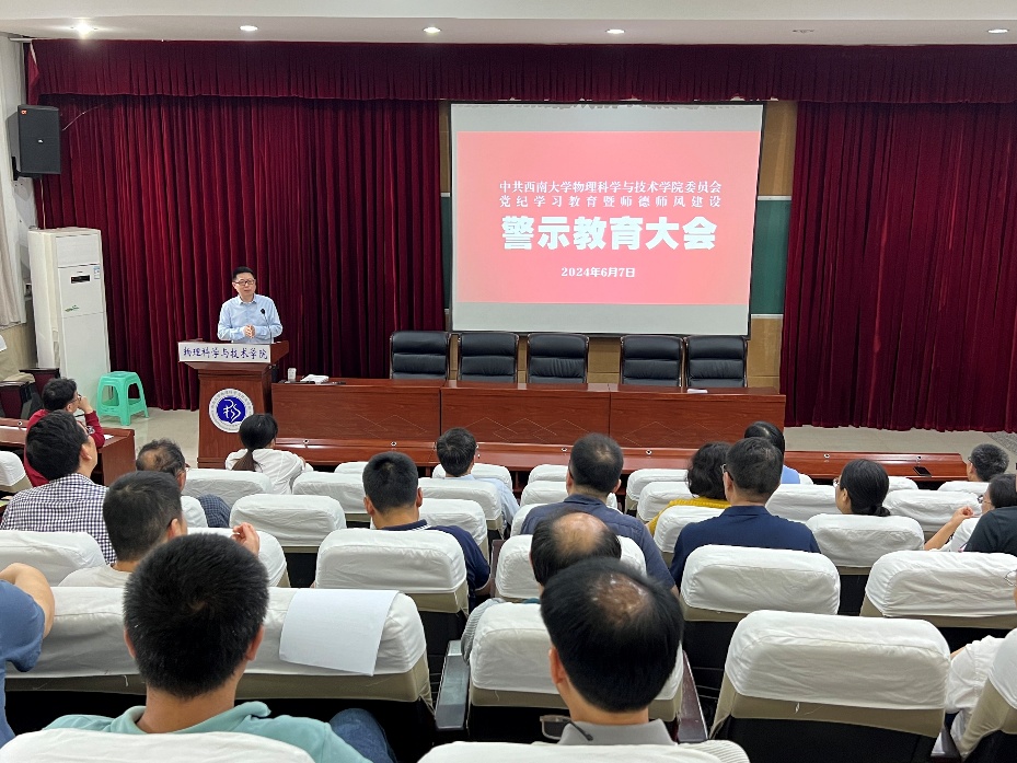 2024年6月,学院党委开展党纪学习教育暨师德师风建设警示教育大会。