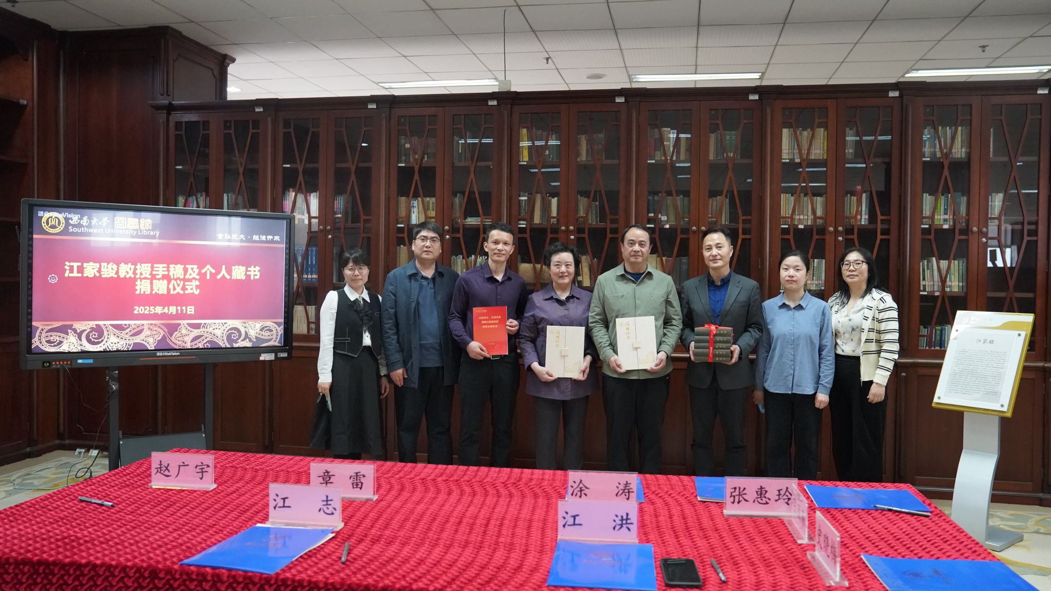 捐赠仪式以“共享‘私家珍藏’,助力教育发展”为主题,由图书馆副馆长赵广宇主持。图书馆党委书记章雷、馆长涂涛以及部分馆员代表出席了活动。捐赠方代表江洪先生在致辞中分享了这批文献的来历与背后的故事,表达了希望这些珍贵资料能够继续服务学术研究、惠及更多学子的美好愿望。